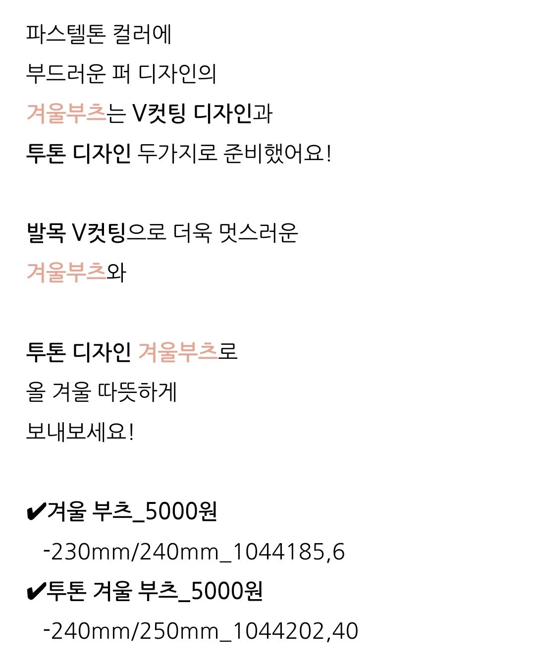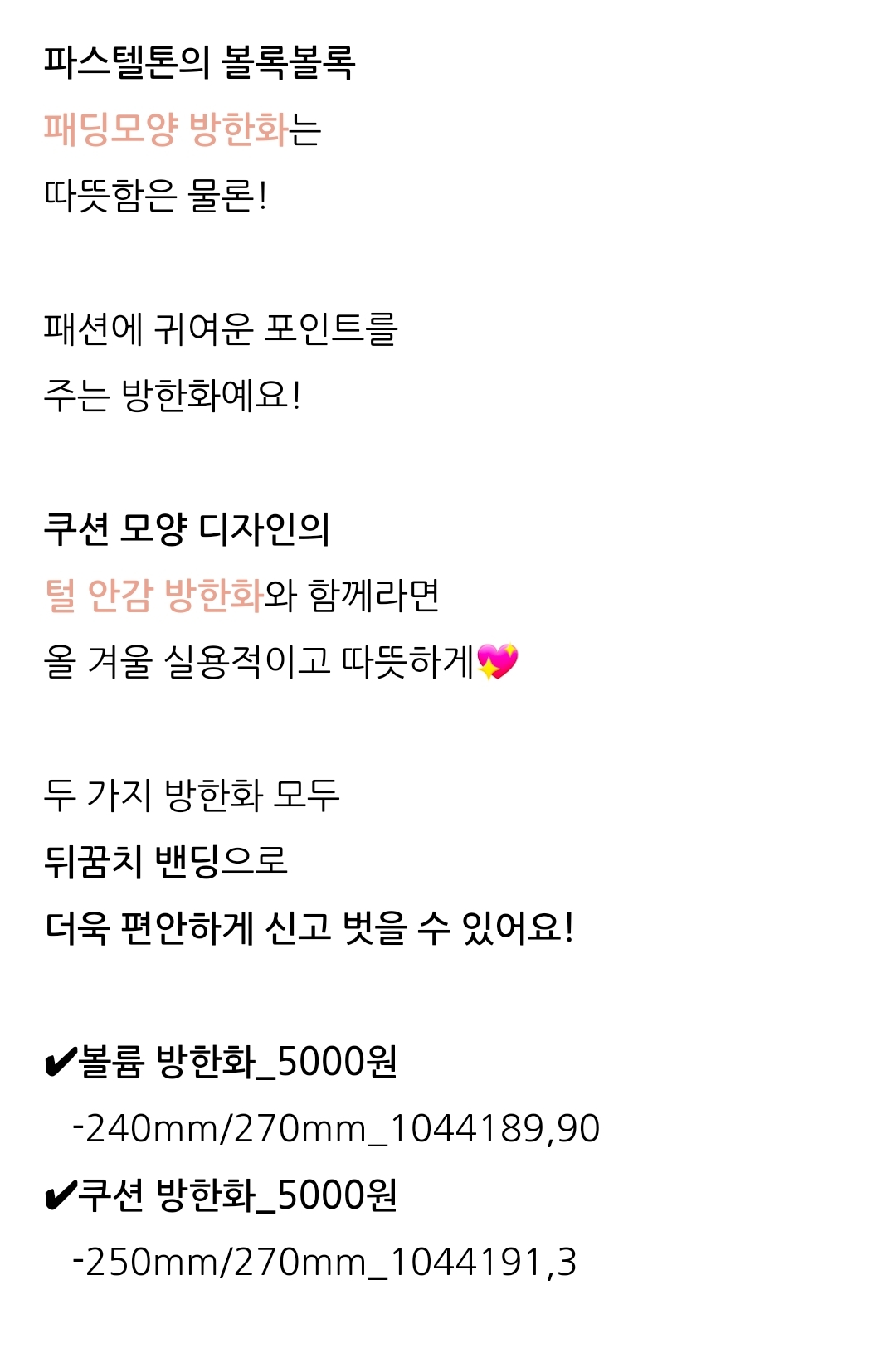 [흥미돋][다이소 11월 신상] 겨울신발 컬렉션💕 뽀글이 부츠부터 패딩 모양의 귀여운 볼륨 방한화까지! 작성자배꼽글좋아|작성시간23.11.09|조회수16,002 목록 댓글 55 글자크기 작게가 글자크기 크게가 출처 : https://m.blog.naver.com/daisoblog/223260065973꽁꽁 언발 녹이는 다이소 11월 신상 겨울신발 컬렉션💕 뽀글이 부츠부터 패딩 모양의 귀여운 볼안녕하세요. 다이소입니다! 뚝-떨어진 기온이🌡 ️ 겨울이 불쑥 다가왔다는걸 보여주는 요즘인데요! 추운...blog.naver.com 다음검색 현재 게시글 추가 기능 열기 북마크 공유하기 신고 센터로 신고 댓글 댓글 55 댓글쓰기 답글쓰기 댓글 리스트 작성자티키타카대표 | 작성시간 23.11.09 ㅁㅊ 너무 좋은데? 작성자현미보리차 | 작성시간 23.11.10 밖에서 신을수있나? 작성자초고수 | 작성시간 23.11.10 오 사무실용으로 사봐야겠다 발시려 작성자인간은재밌어 | 작성시간 23.11.10 헐 강쥐 산책용으로 겨울신발 하나 필요했는데 개꿀 작성자rattata | 작성시간 23.11.10 귀엽다ㅋㅋㅋㅋㅋ 실내화인가 댓글 전체보기