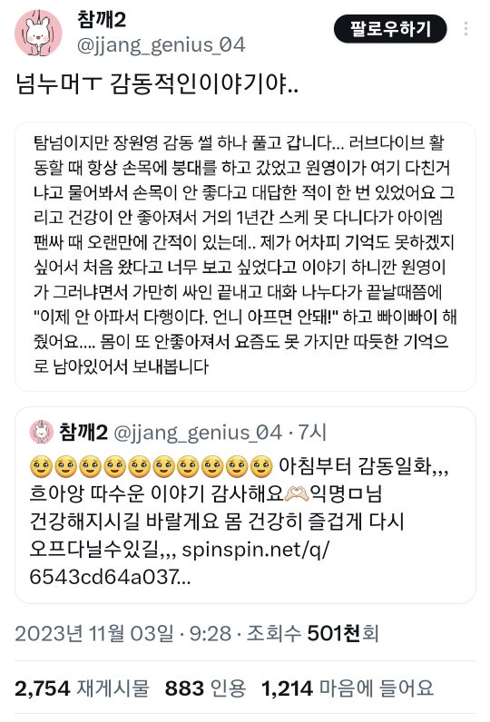 [스크랩] [흥미돋]아파서 오랜만에 온 팬 기억했는데 모른 척 해준 아이브 장원영