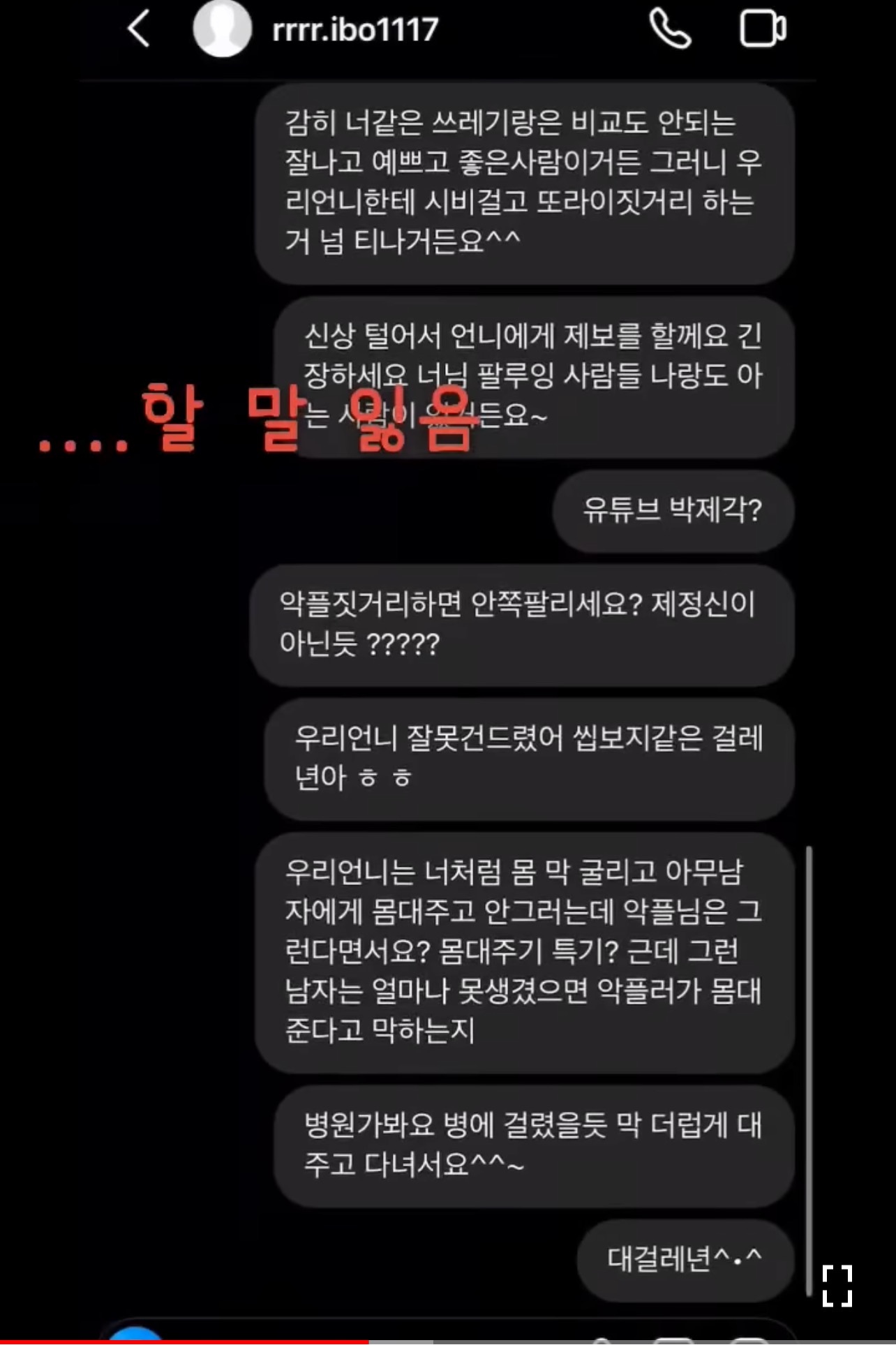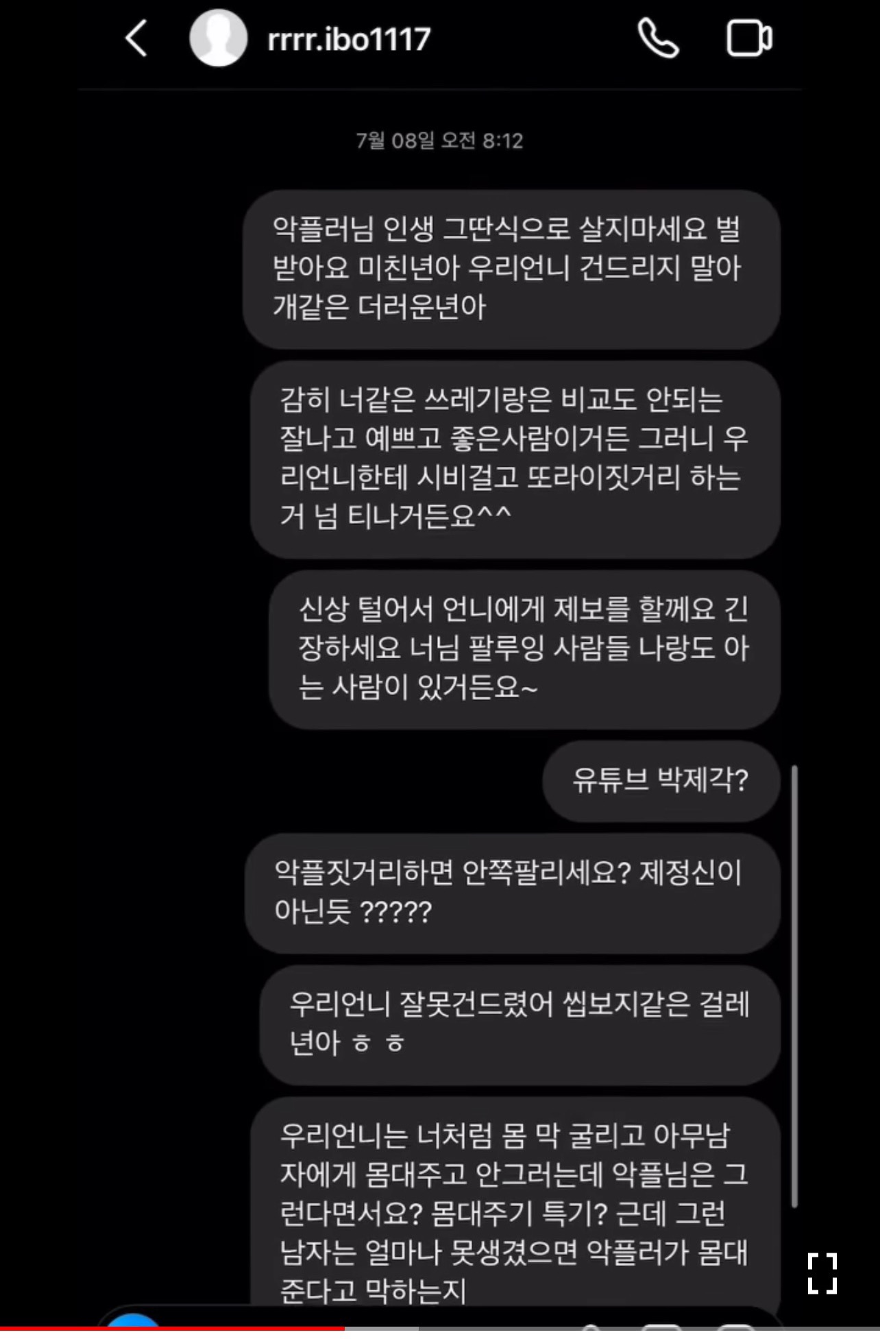 손봄향한테 악플 달았던 사람한테 보내진 디엠임