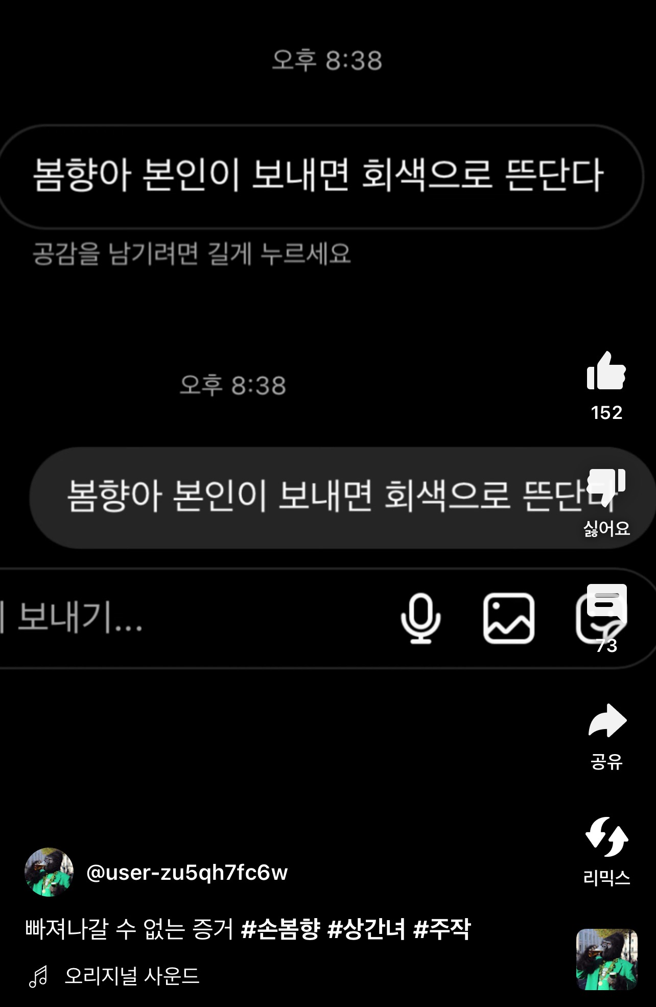 상간녀가.. 손봄향 악플러한테 이런디엠을 보낸다..?