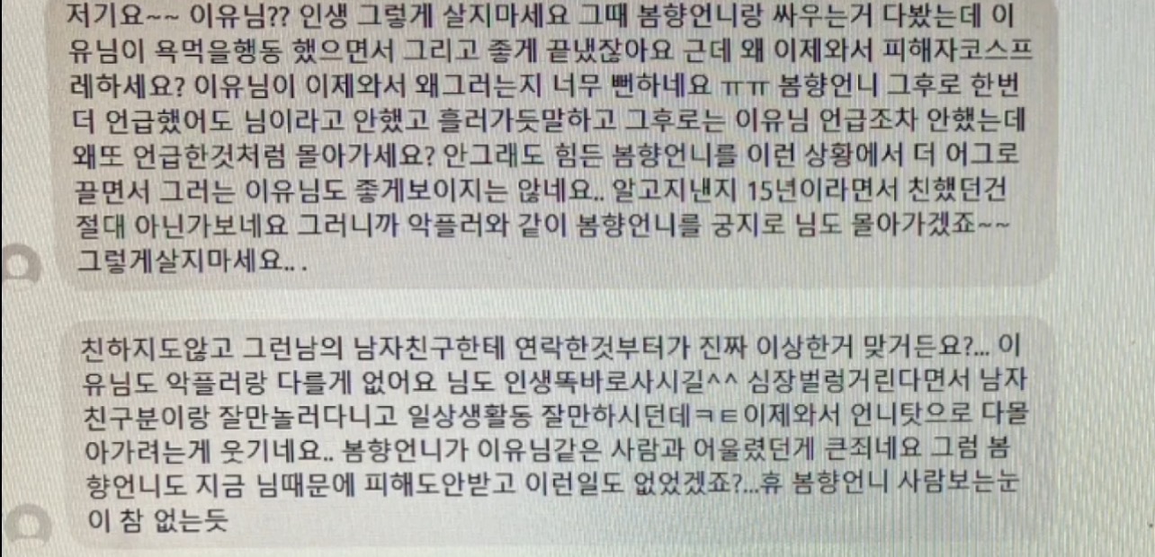 15년 지기에게 온 디엠내용임 평소 상간녀 말투랑 똑같음