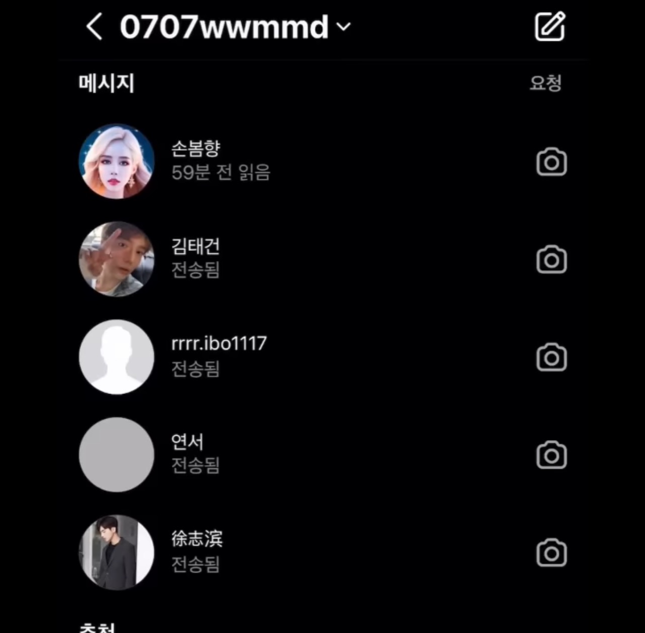 상간녀가 차단재가입을 반복해서 차단한 아이디만 거의 백개가 넘는다고 했지만 디엠 까보니까 차단도 안했고 저 아이디로 계속 손봄향인스타로 상간녀인척 스스로 주작 디엠을 보내고있었음