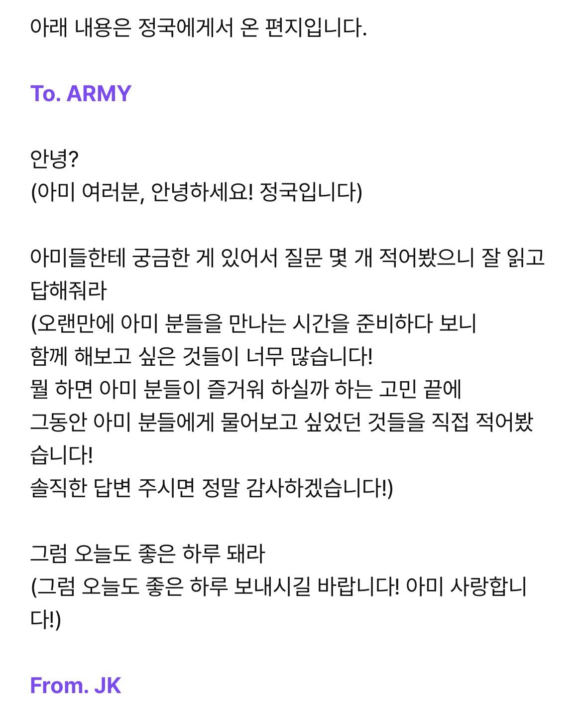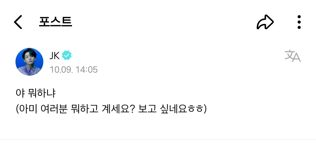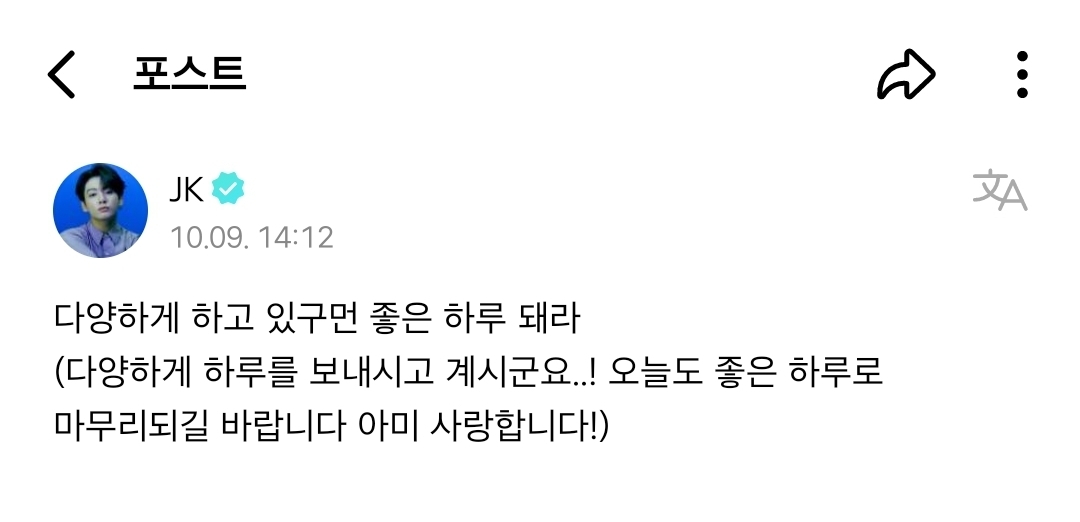 *여성시대* 차분한 20대들의 알흠다운 공간 [배꼽의행방]방탄 정국 신개념 반존대.jpg 작성시간23.11.15|조회수92,478 목록 댓글 33 글자크기 작게가 글자크기 크게가 반말(존댓말) 출처 : https://theqoo.net/square/3000736931 다음검색 현재 게시글 추가 기능 열기 북마크 공유하기 신고 센터로 신고 댓글 33 댓글 리스트 작성시간 23.11.15 번역하기 편하라고 그러는건가 ㅋㅋㅋㅋㅋㅋ 작성시간 23.11.15 귀엽네 짜식 작성시간 23.11.15 오글.. 작성시간 23.11.16 귀엽ㅋㅋㅋㅋ 작성시간 23.11.19 아진짜 뭐지 했는데 해외팬들 번역용인가봄?ㅋㅋㅋ 카페 방문해 더 많은 댓글 만나기!