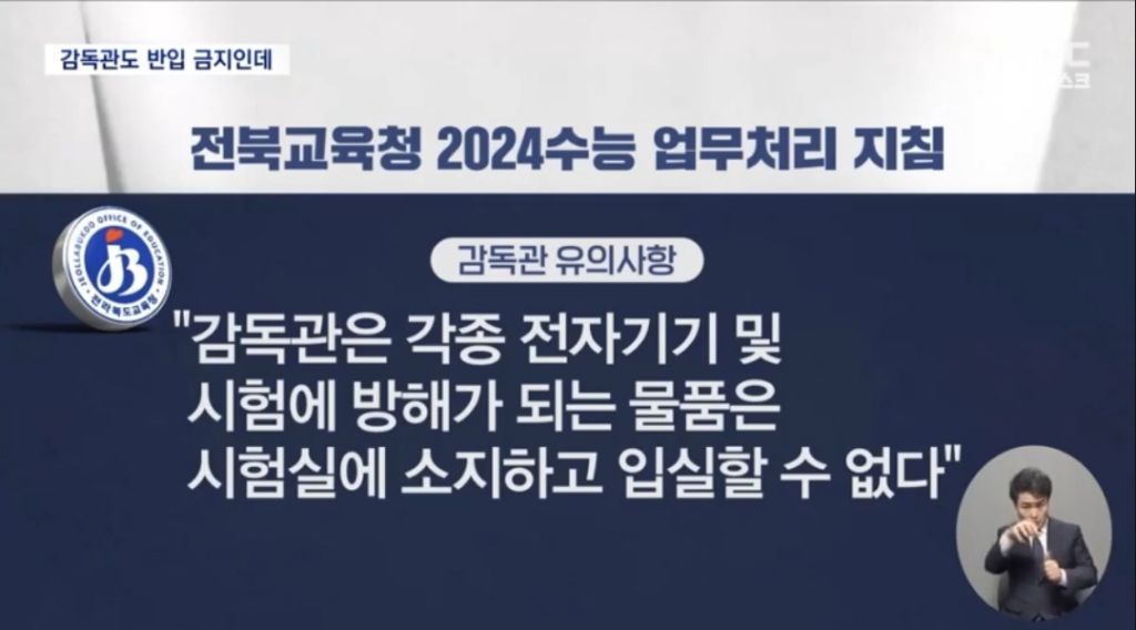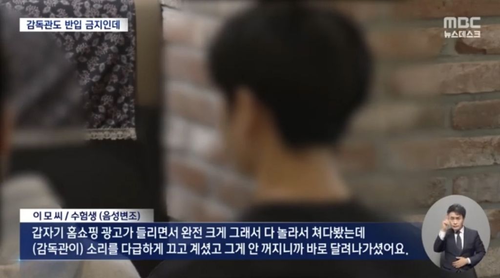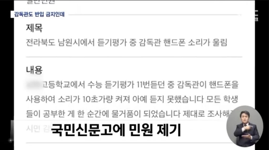 시험 감독관도 수험생과 마찬가지로 휴대전화를 가지고 시험실에 들어갈 수 없지만 이를 어긴 겁니다.