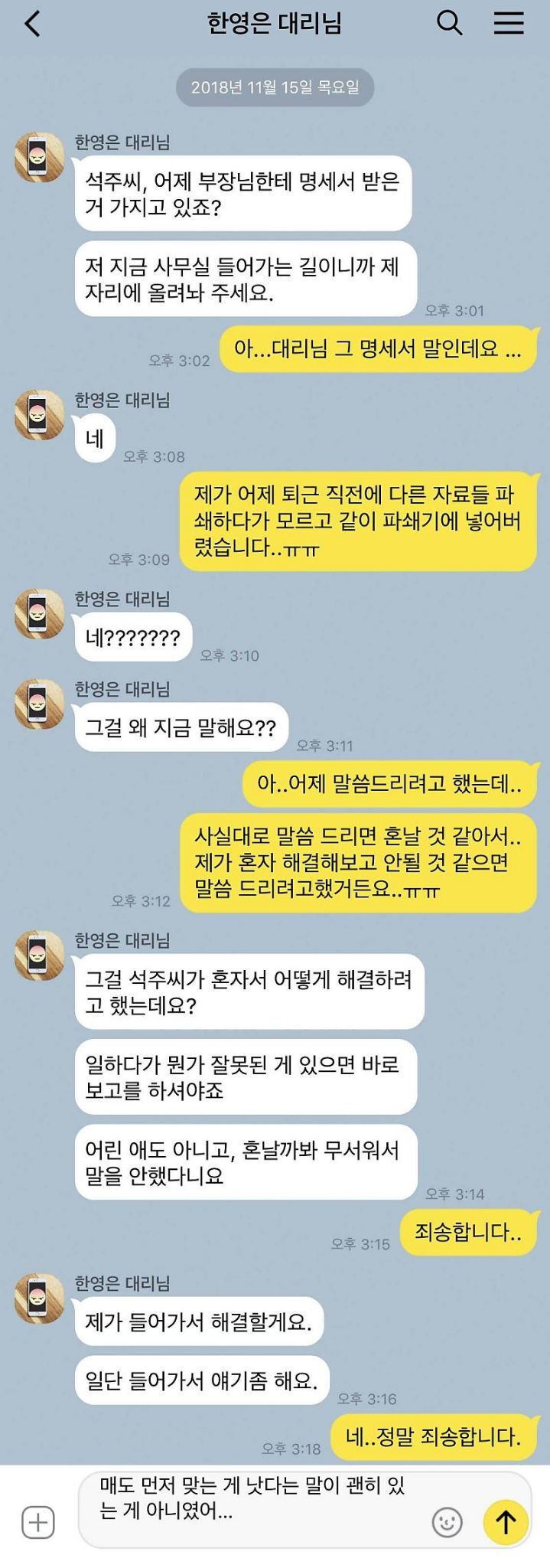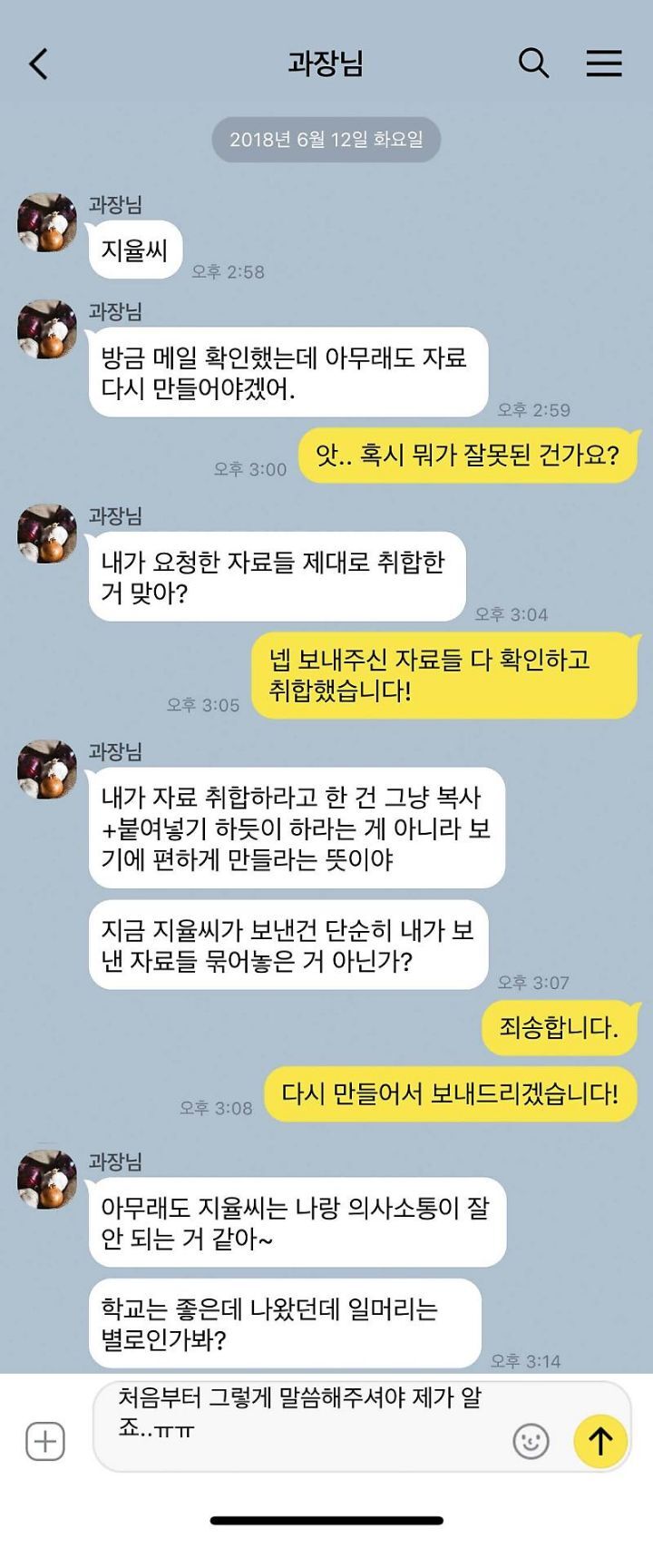 지적하면 앗! 넵! 이지럴함 죄송하단말 절대 없고… 왜그랫는지에 대해 변명도 없고…… -