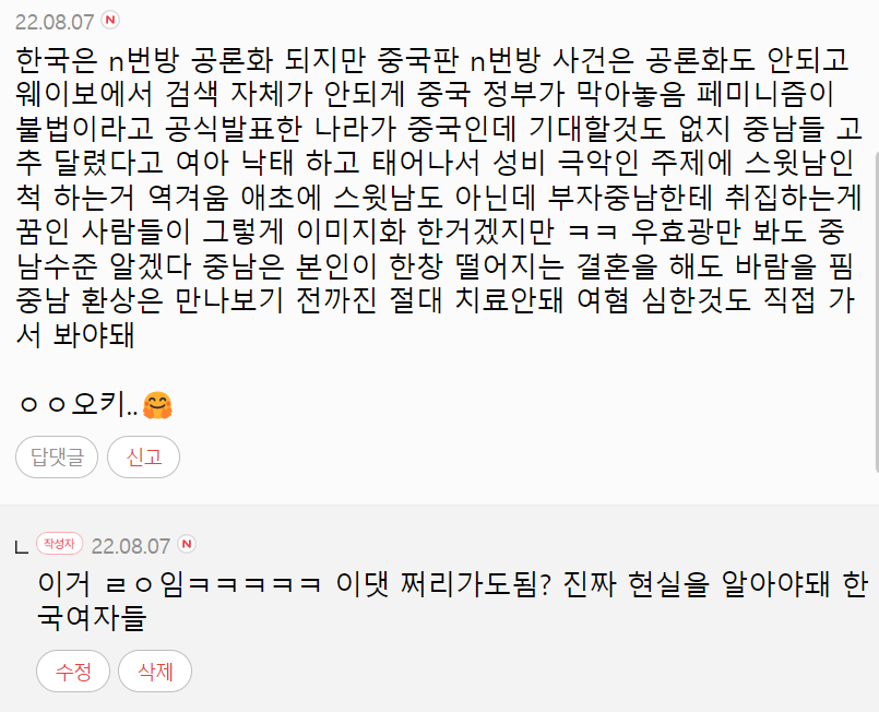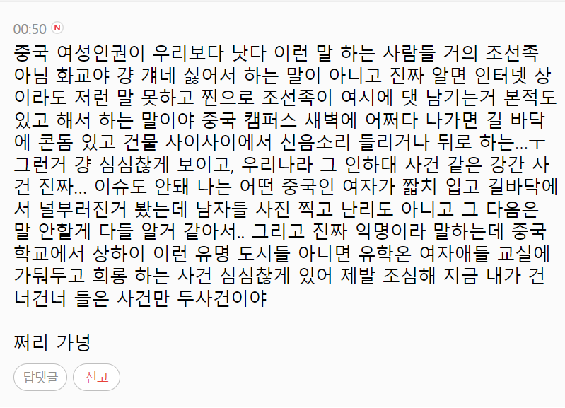 [스크랩] [흥미돋]인터넷에서 아무리 중국 욕해도 중국이 얼마나 인권바닥이고 여혐 넘사인지 체감 못하는 달글+댓글