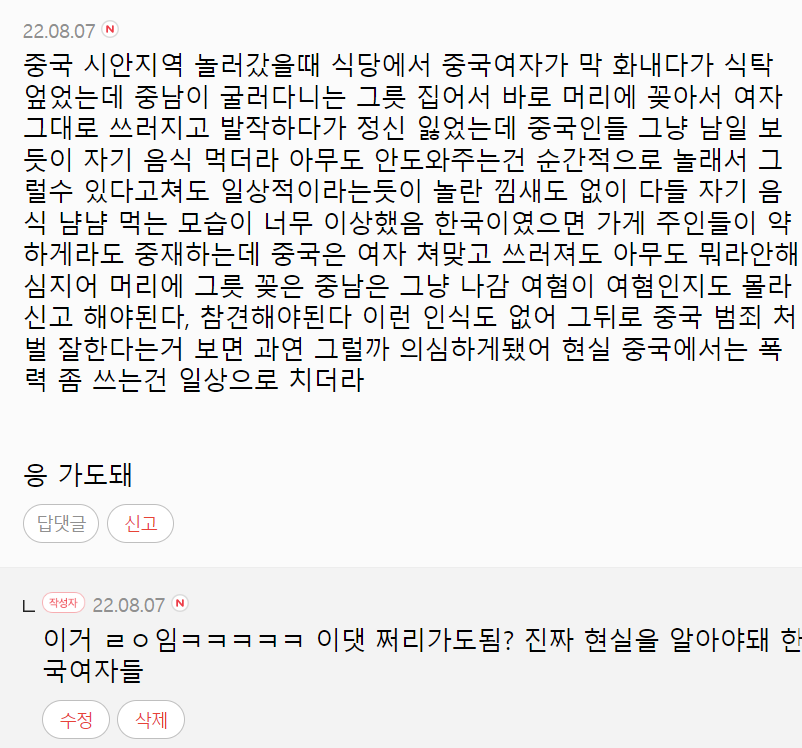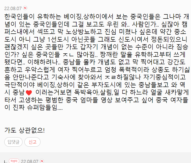 한국이나 중국이다 똑같다 이건 진짜 중국을 아예 몰라서 그럼