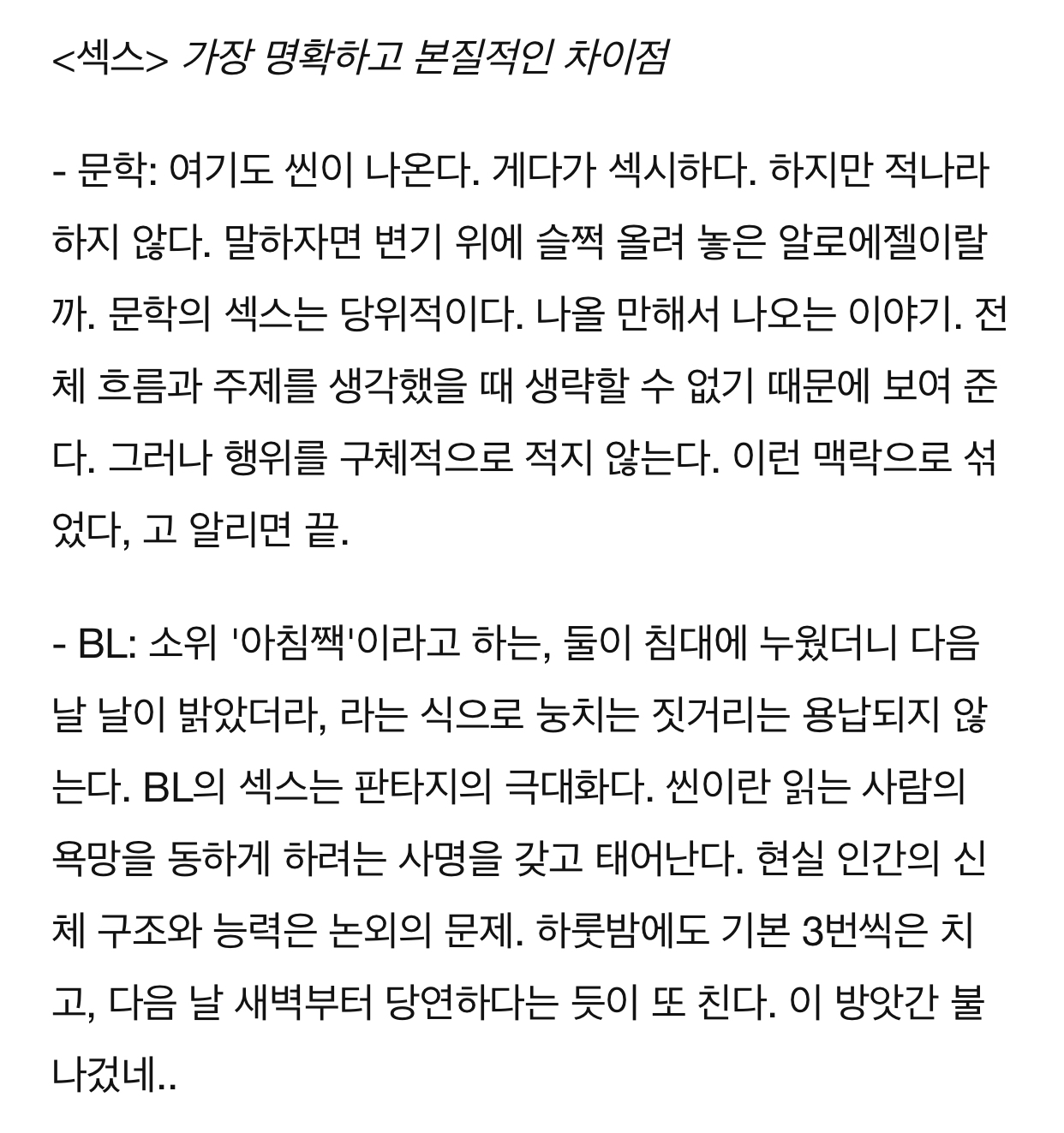 (비엘은 수준낮고 퀴어문학은 수준높다는 얘기❌❌❌)