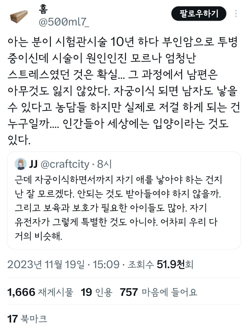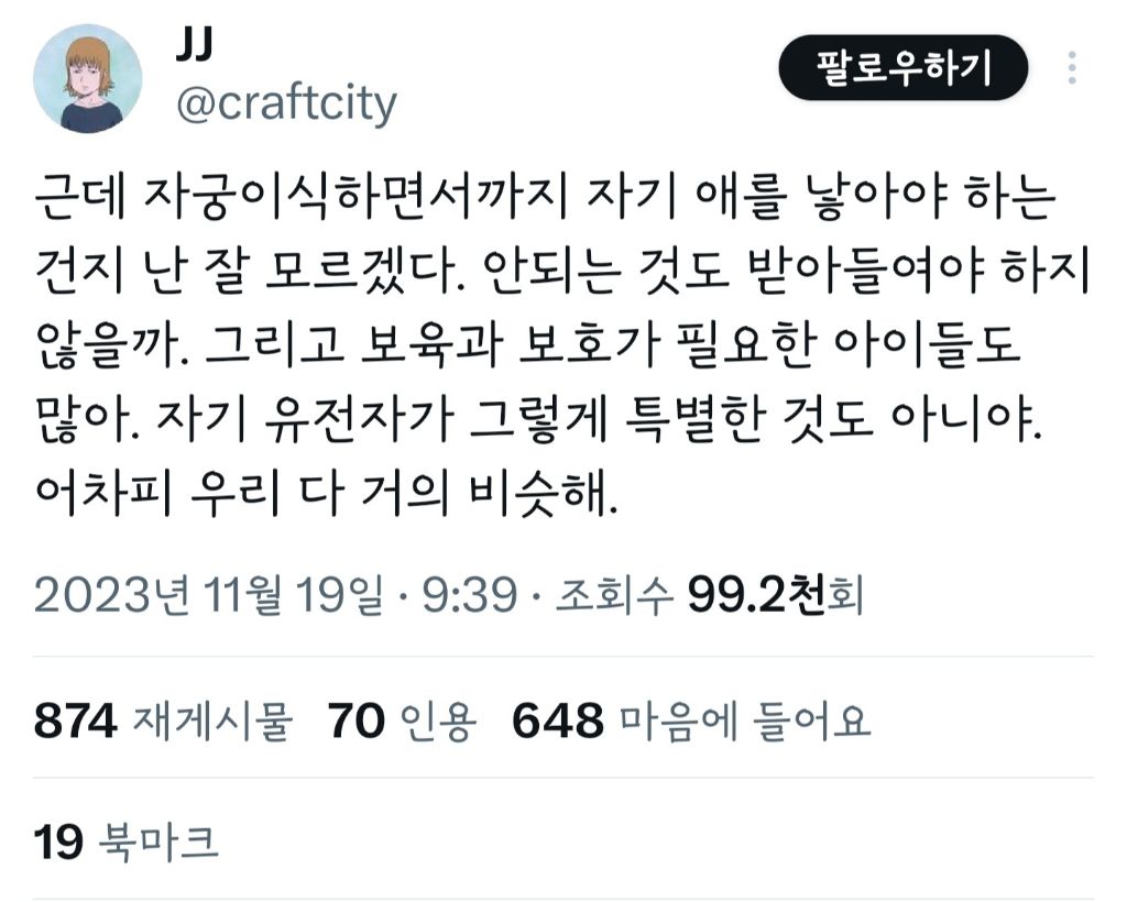 힘들어도 노력해서 자기아이를 갖고싶은 사람은 노력하면 되고