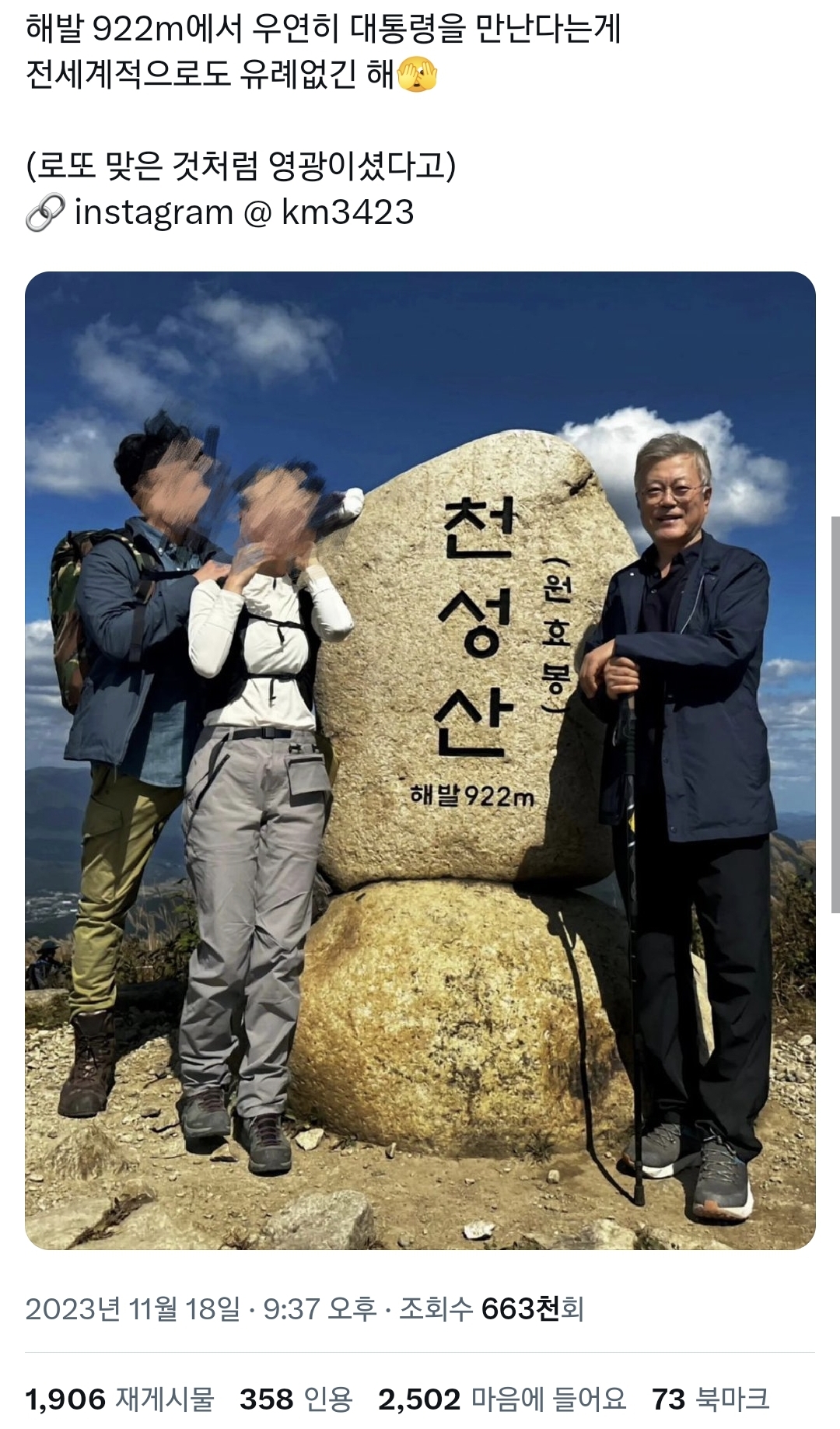 [흥미돋]해발 922m에서 우연히 대통령을 만난다는 게 유례없긴 해.twt 작성자아마레티|작성시간23.11.19|조회수15,532 목록 댓글 48 글자크기 작게가 글자크기 크게가 출처 : https://twitter.com/tyiee509/status/1725855634636370329?t=zkB4MVppwooR_4RUK4dtTQ&s=19 여성시대 아마레티왜케 합성같냐 다음검색 현재 게시글 추가 기능 열기 북마크 공유하기 신고 센터로 신고 댓글 댓글 48 댓글쓰기 답글쓰기 댓글 리스트 작성자김지훈 | 작성시간 23.11.19 오 넘 부러워ㅜㅜ 작성자인트함수 | 작성시간 23.11.19 와 너무부러워 작성자곰동주 | 작성시간 23.11.19 너무 부러워ㅠㅠ 작성자ariana tall | 작성시간 23.11.19 뷰럽다ㅠㅠㅠㅠㅠㅠ 작성자SKIMMILK | 작성시간 23.11.20 와 대박!! 너무 좋았겠다… 댓글 전체보기