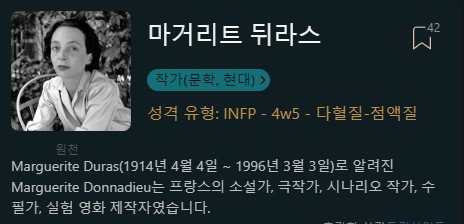 마르그리트 뒤라스 INFP 4w5