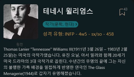 테네시 윌리엄스 INFP (4w5)