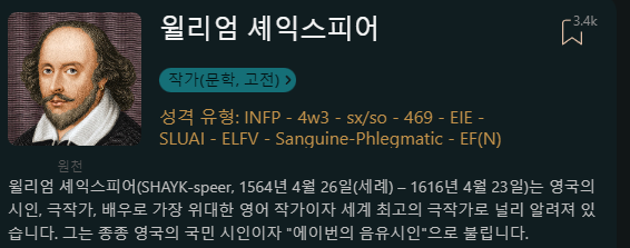 윌리엄 셰익스피어 INFP (4w3)