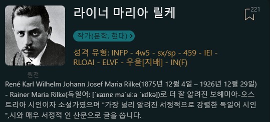 "그를 파악할 수 없다는 견해는 이해하지만 _nfp로 입력하기에 충분한 증거가 있다고 생각함.그의 작품은 원근법으로 가득차 있고 높은 ne로 연결되는 말장난이 많음.