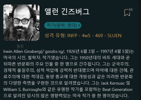 앨런 긴즈버그 INFP (4w5)
