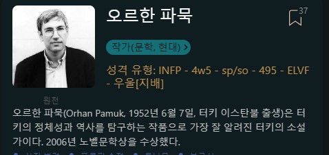 오르한 파묵 INFP (4w5)