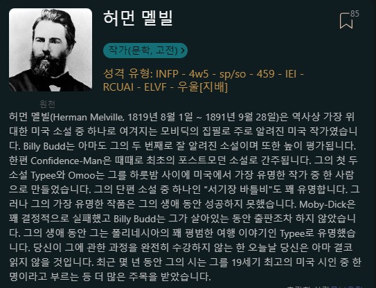 허만 멜빌 INFP (4w5)
