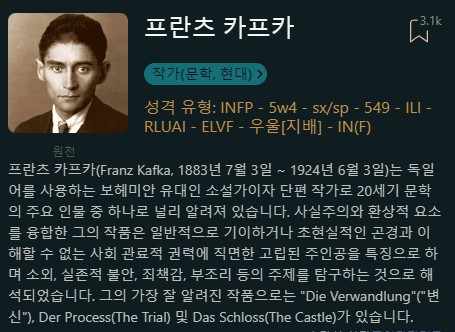 프란츠 카프카 INFP (5w4)