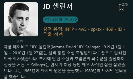 J.D. 샐린저 INFP (4w5)