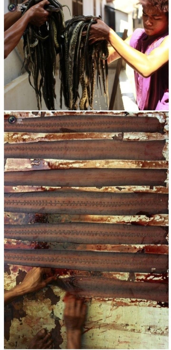 뱀을 잔인하게 죽이는 이 사람들이 가죽지갑을 사용할까