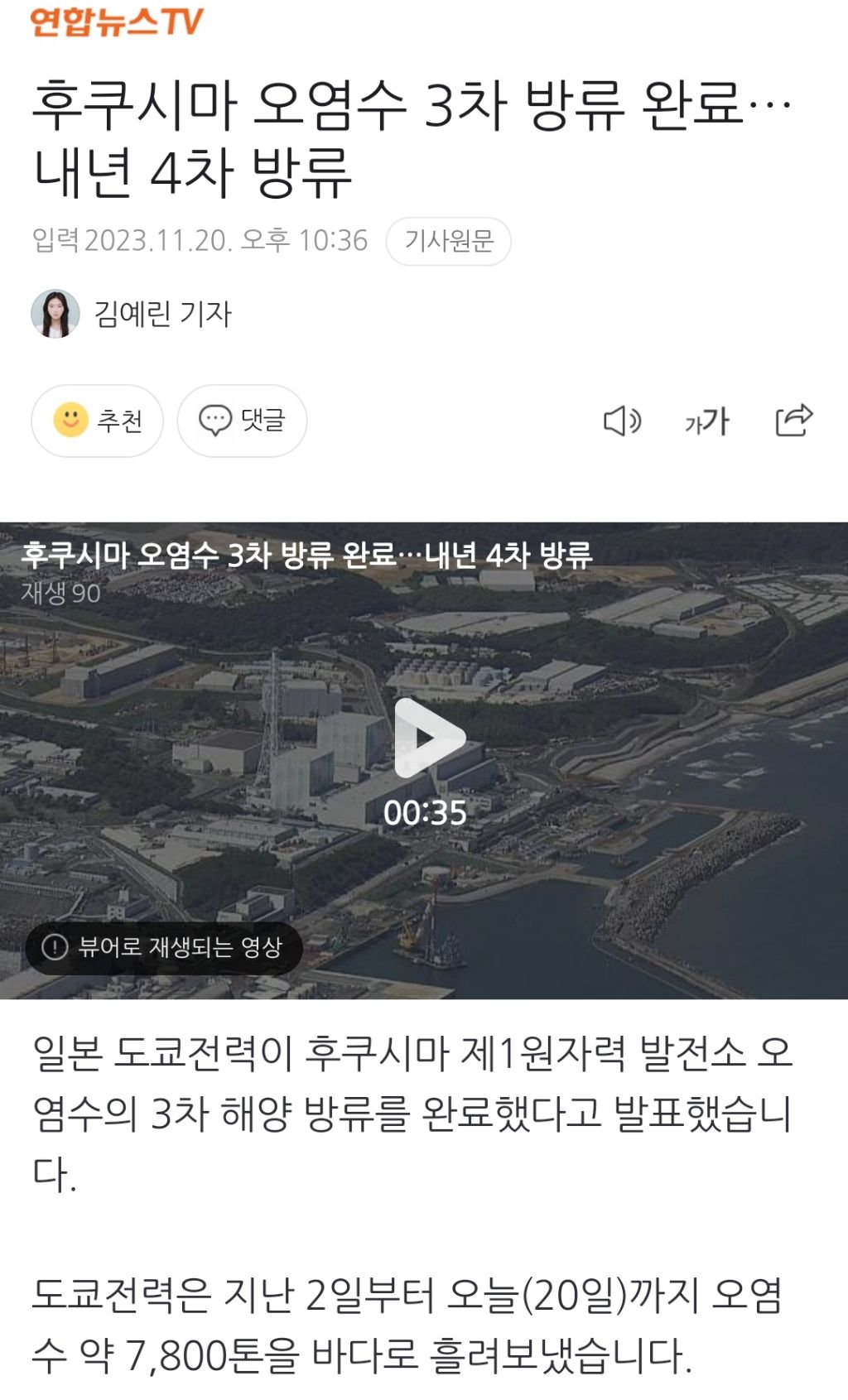 [여시뉴스데스크]후쿠시마 오염수 3차 방류 완료…내년 4차 방류 작성자천리길|작성시간23.11.20|조회수1,592 목록 댓글 37 글자크기 작게가 글자크기 크게가 출처 : https://naver.me/5LuBWToI후쿠시마 오염수 3차 방류 완료…내년 4차 방류일본 도쿄전력이 후쿠시마 제1원자력 발전소 오염수의 3차 해양 방류를 완료했다고 발표했습니다. 도쿄전력은 지난 2일부터 오늘(20일)까지 오염수 약 7,800톤을 바다로 흘려보냈습니다. 일본 정n.news.naver.com이하 생략전문 출처로 다음검색 현재 게시글 추가 기능 열기 북마크 공유하기 신고 센터로 신고 댓글 댓글 37 댓글쓰기 답글쓰기 댓글 리스트 작성자쪽바리들당장참수형 | 작성시간 23.11.21 하....... 진짜 쟤네 언제 가라앉냐... 작성자뇌빈 여러분 | 작성시간 23.11.21 ㅅㅂ……… 작성자으랏찻찻 | 작성시간 23.11.21 개조용해 ㅋㅋㅋㅋㅋㅋㅋ아무도몰라.....방류햇는지...에휴.. 작성자처돌이는처돌지않았다고해요 | 작성시간 23.11.21 ㅌㅋㅋ진짜 개조용하네 작성자이 청 아 | 작성시간 23.12.01 하히발ㅠㅠㅠㅠㅠ개자식들 댓글 전체보기