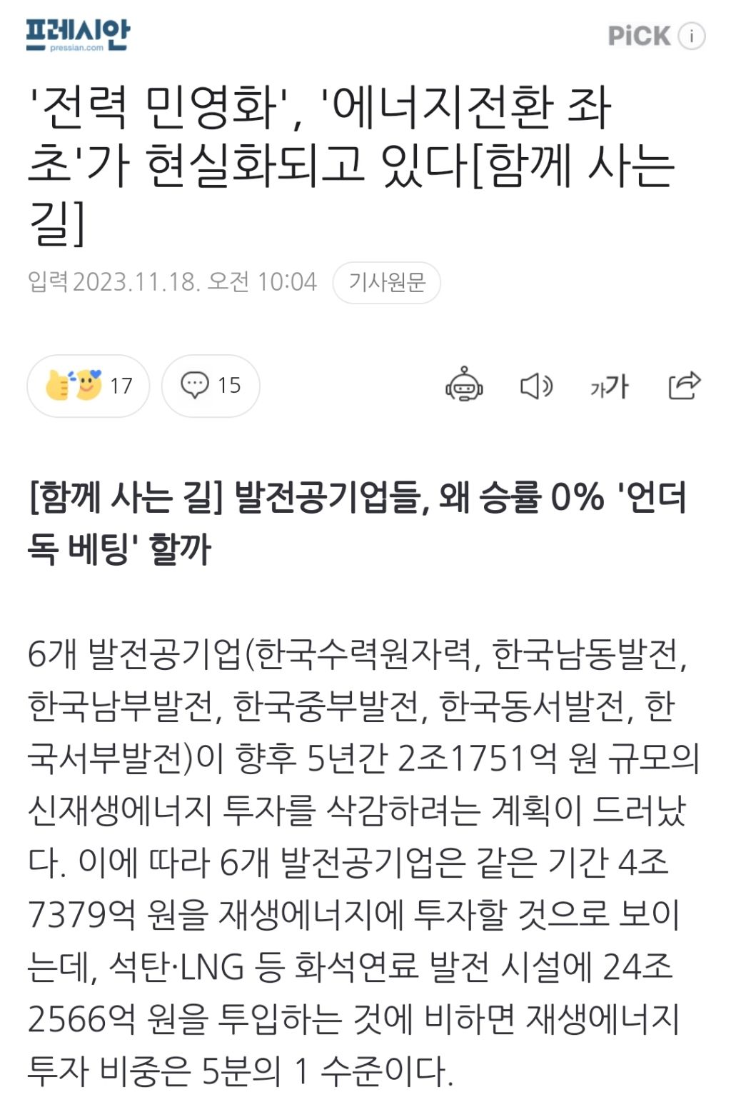 작성자잉크테라조 작성시간 23.11.21 한전 적자도 이것 때문이잖아 발전소 따로 떼어내고 민간 발전소에서 전기 비싸게 사오니까 적자 나지