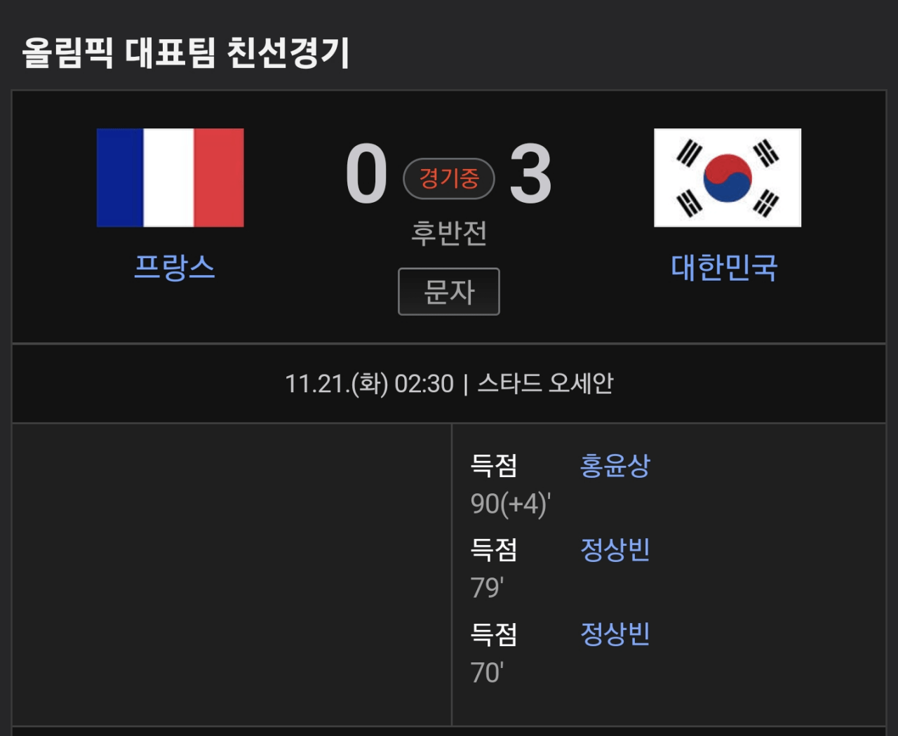 프랑스 올림픽 대표팀 상대로 역대 첫 승리