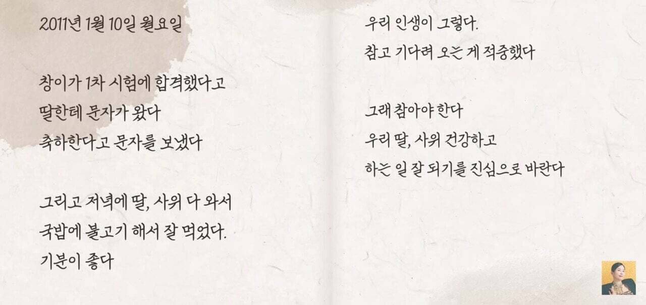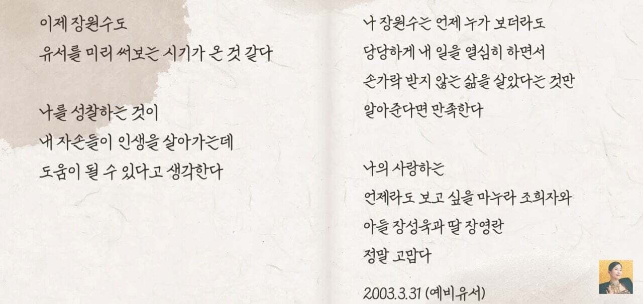 [눈물한방울]6년전 돌아가신 아빠 일기장 이제야 꺼내봤다가 오열한 장영란.jpg 작성자은조|작성시간23.11.21|조회수13,030 목록 댓글 40 글자크기 작게가 글자크기 크게가 출처 : 여성시대 은조 하관 똑디.. https://youtu.be/rcg4rRZwpWE?si=3x3Vo2uJfdnpxtMa 다음검색 현재 게시글 추가 기능 열기 북마크 공유하기 신고 센터로 신고 댓글 댓글 40 댓글쓰기 답글쓰기 댓글 리스트 작성자리다경 | 작성시간 23.11.21 그래서 영란님 그렇게 밝고 사랑스러우셨구나 작성자머슴 | 작성시간 23.11.21 아 밖에서 눈물 터질것 같아서 존나 대충봤어ㅠㅠㅠㅠㅠㅠㅠㅠ 작성자위럽유러츠위럽유러츠 | 작성시간 23.11.21 사랑이야 이게 사랑이지 ㅠㅠ 작성자우쿨렐렐레 | 작성시간 23.11.23 아 눈물난다ㅜㅜ 영란언니 더 행복하세요 작성자(본인닉네임) | 작성시간 23.12.10 흑흑 쩌리로 퍼가유 댓글 전체보기