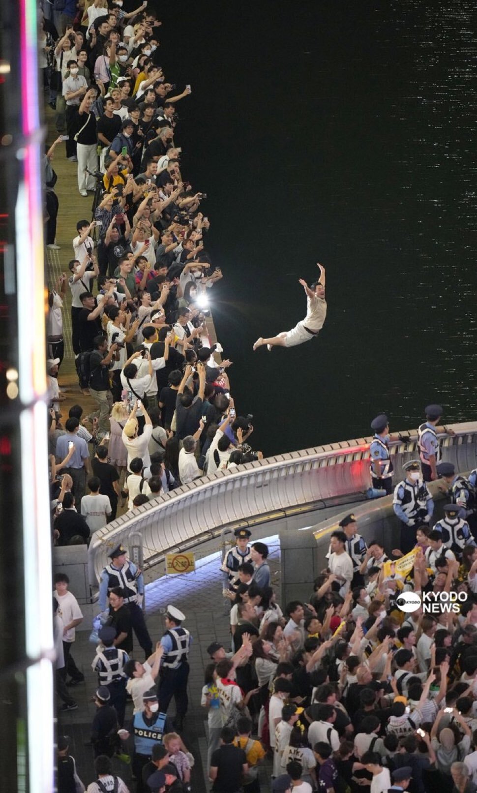 (일본 무슨 야구팀이 18년만에 우승해서 다이빙한거라고...)