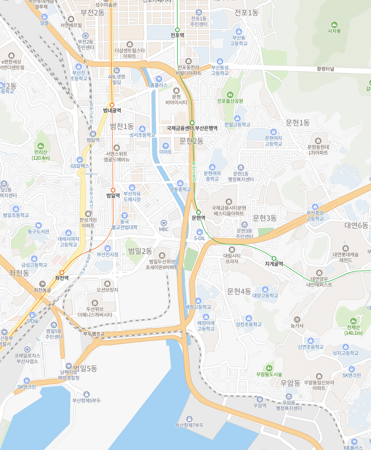 부산진구 백양산에서 시작해서 바다로 빠지는 짧은 하천인데