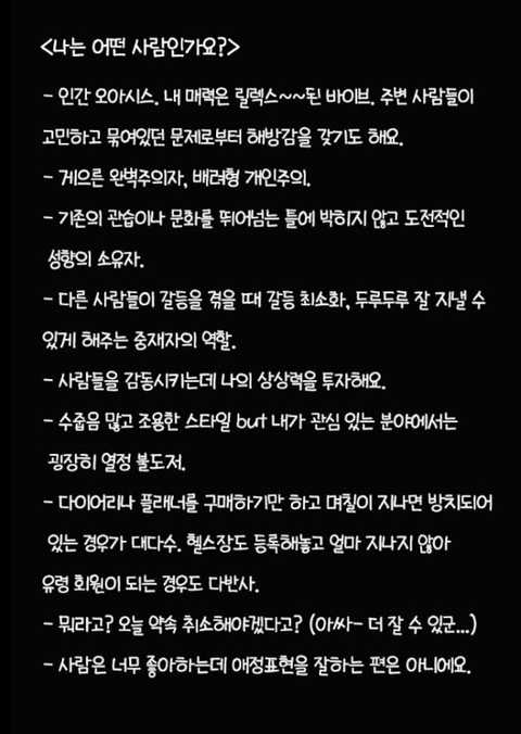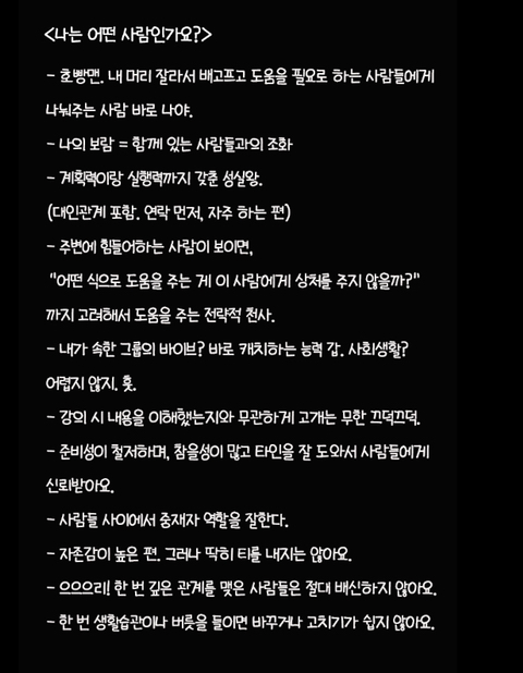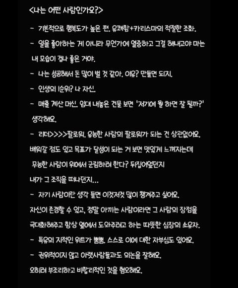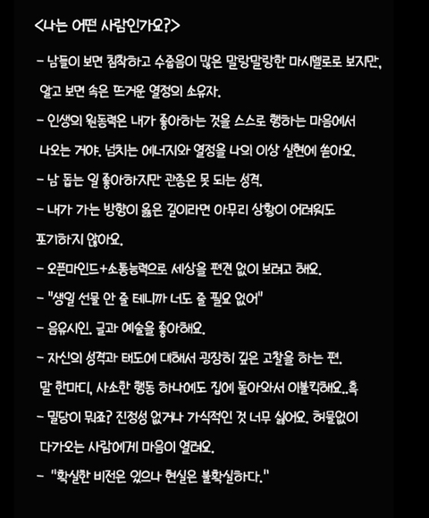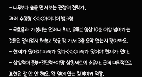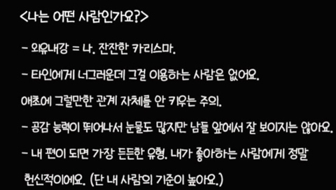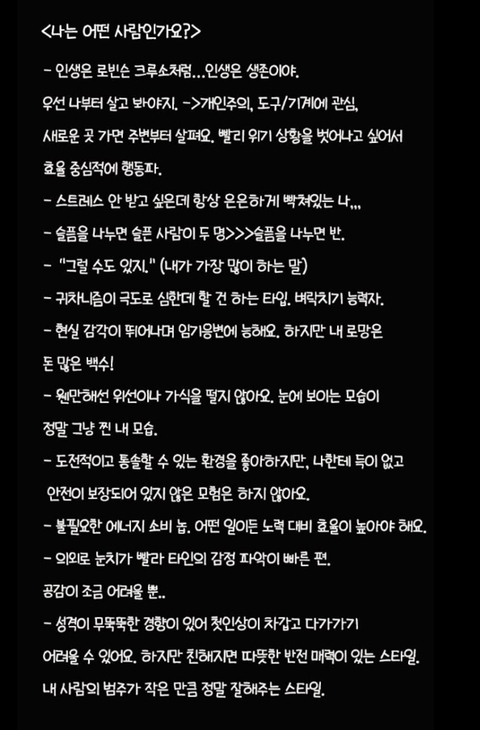 (예를 들면 엔티제 남자 나르시즘 쩌는거, j인 애들 계산적인거 뭐 이런것들..)