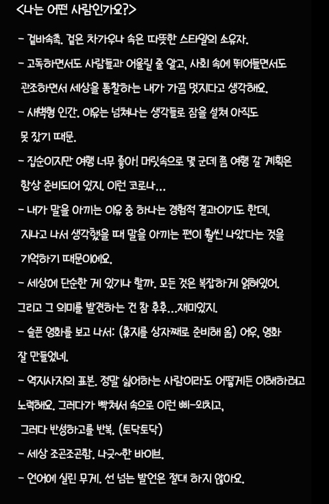 한남들이 댕청하고 단순해서 그런가 엠비티아이 질문들만 솔직하게 풀었으면 사이언스 수준으로 잘맞는거 봐서 믿게됨 ㅋㅋㅋㅋ