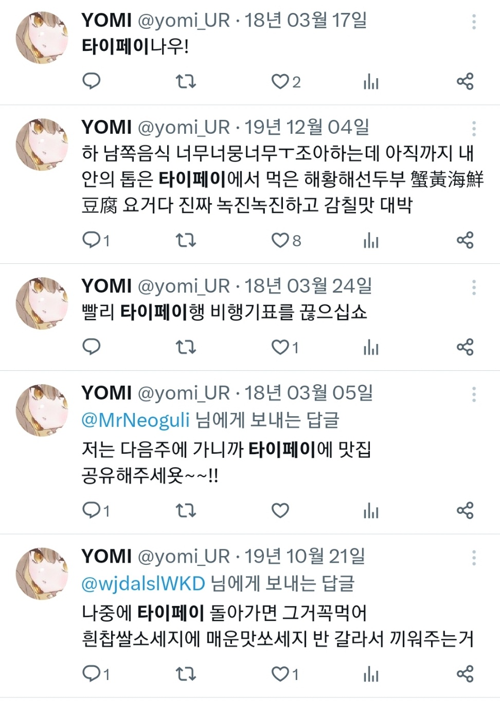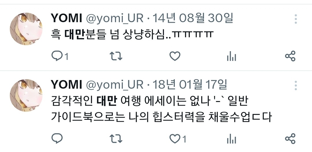 그냥 대만 여행 존나 자주가고 좋아함