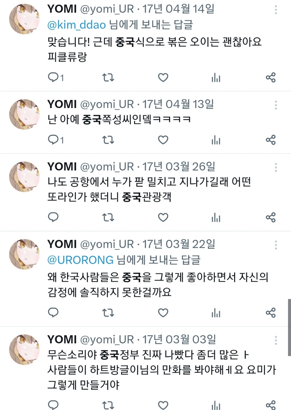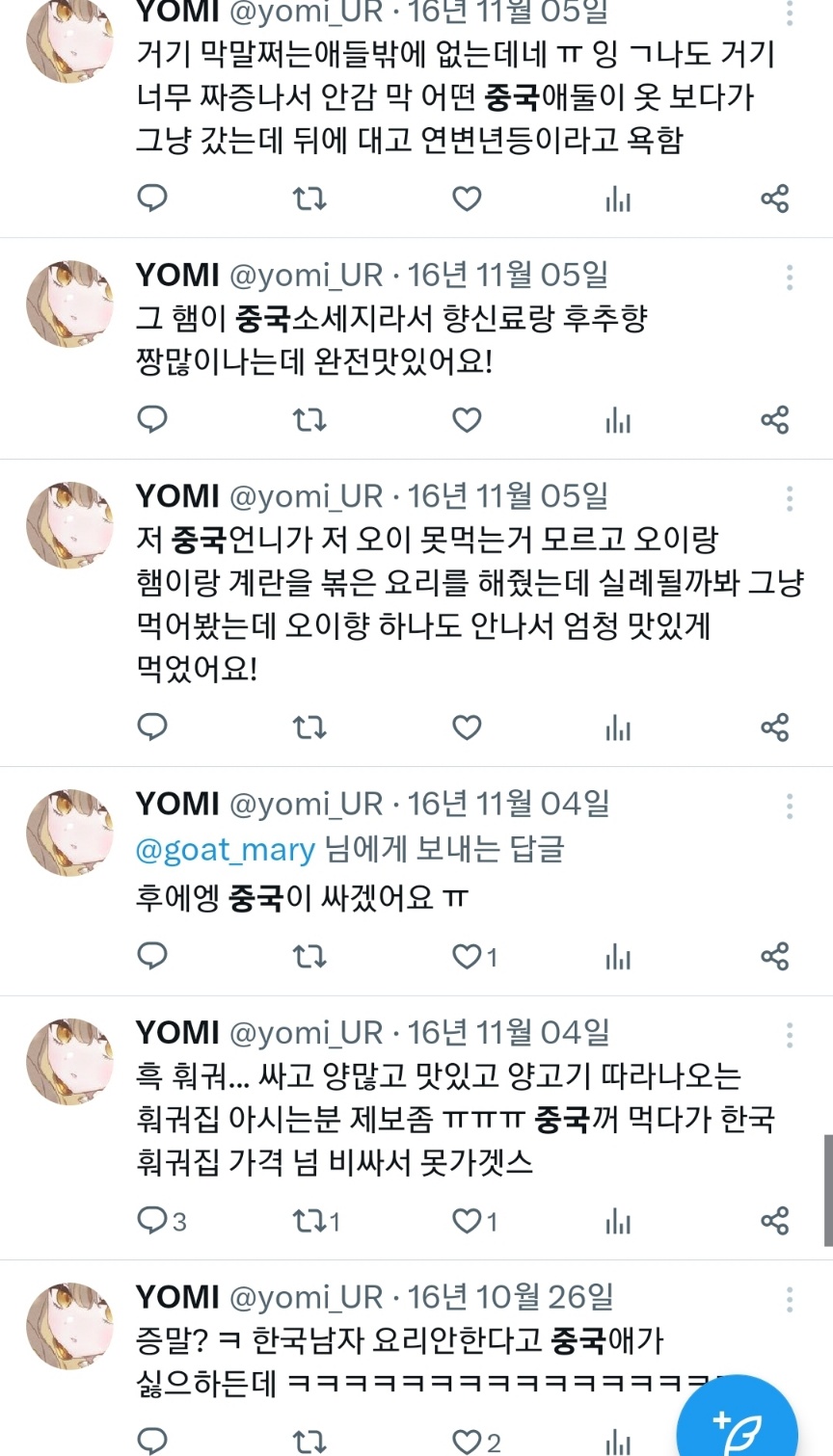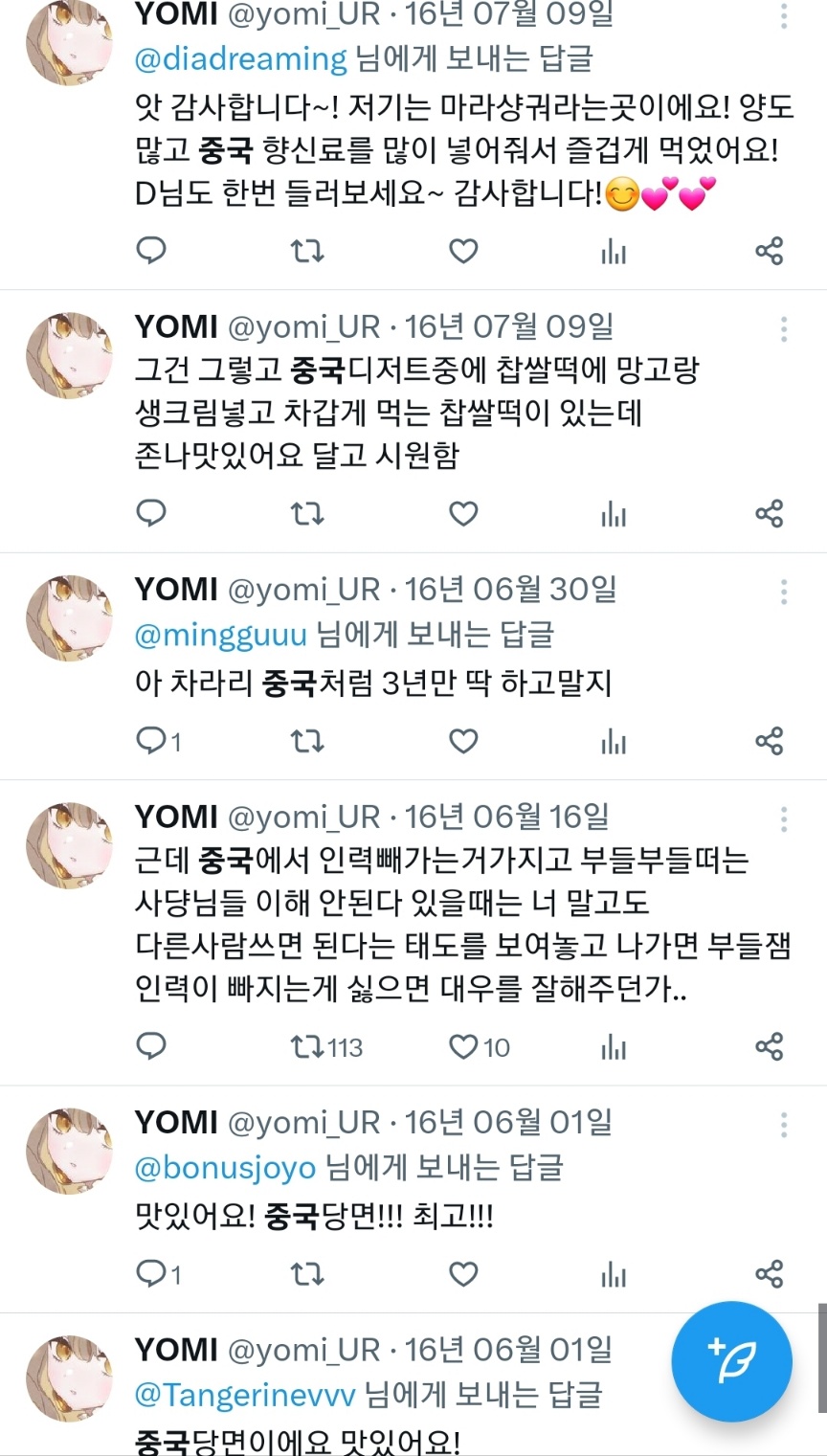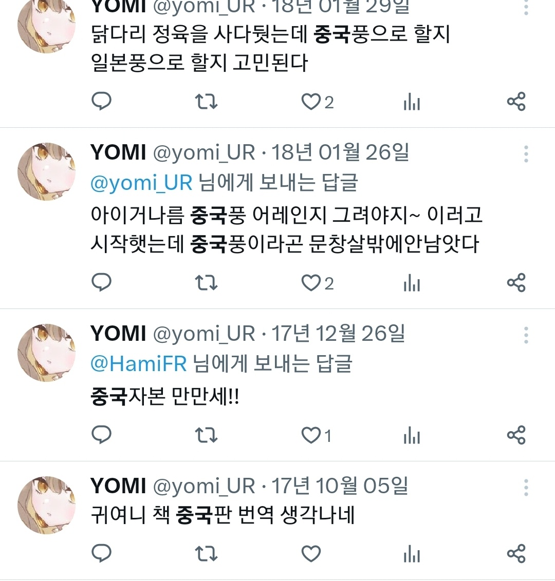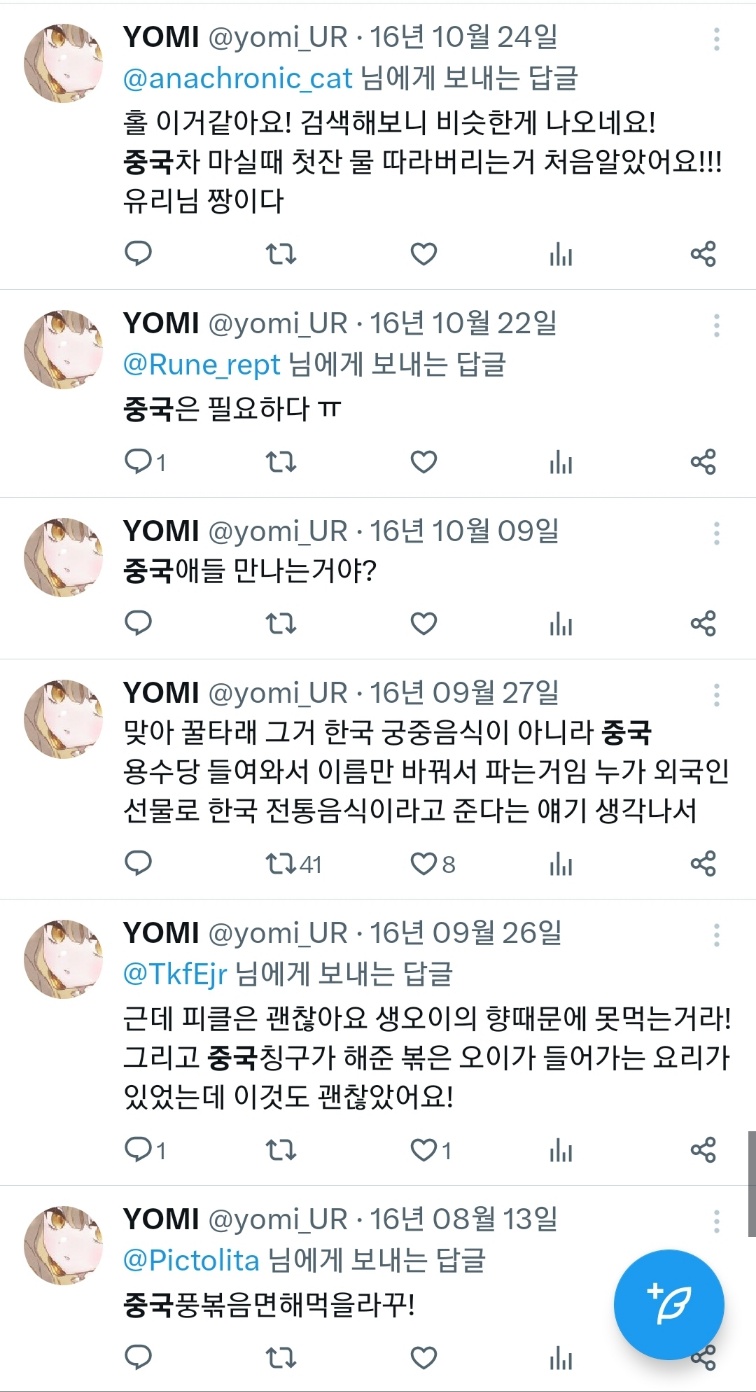 거의 10년전 트윗인데도 저때 한국 반중정서 얼마나 심했는지 따져보면