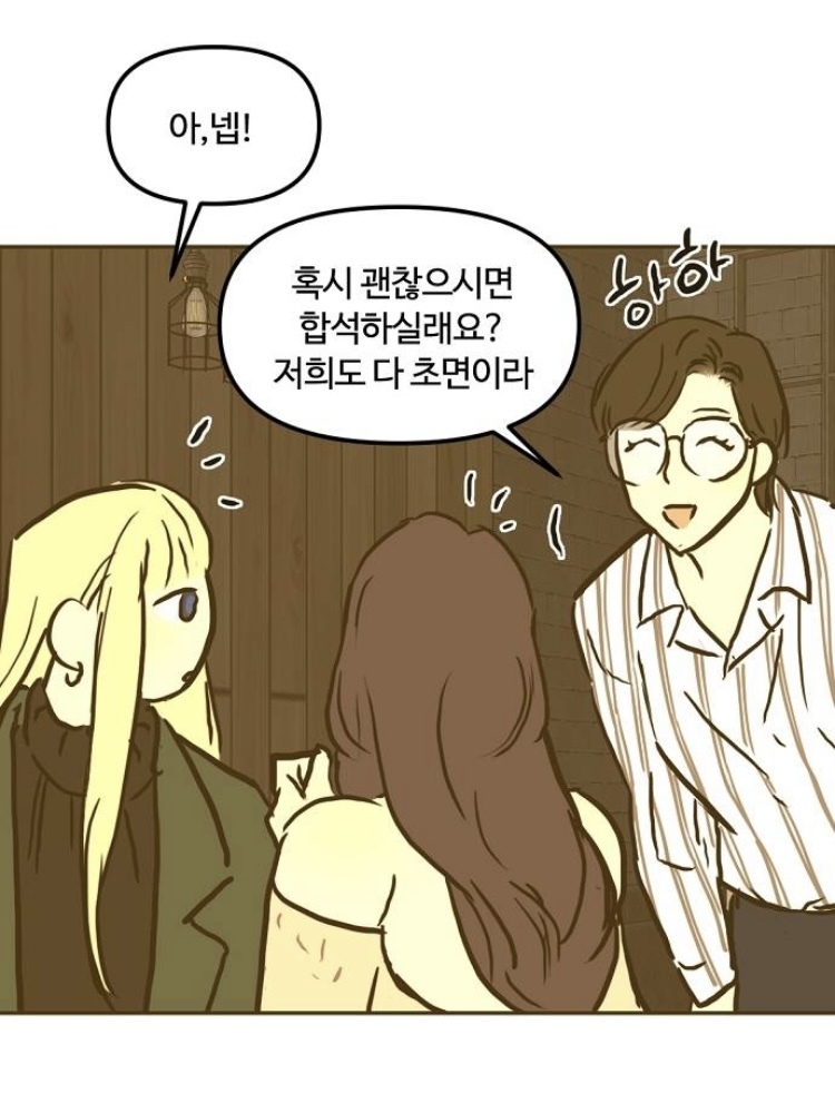다행히도 다들 서로 초면이라 같이 합석을 하게 되는데