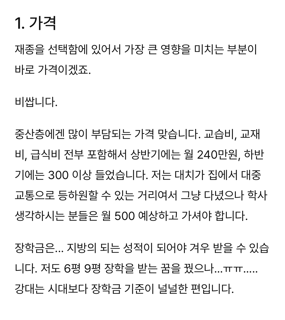 장학금이 궁금해서 검색해보다가 사족 붙임
