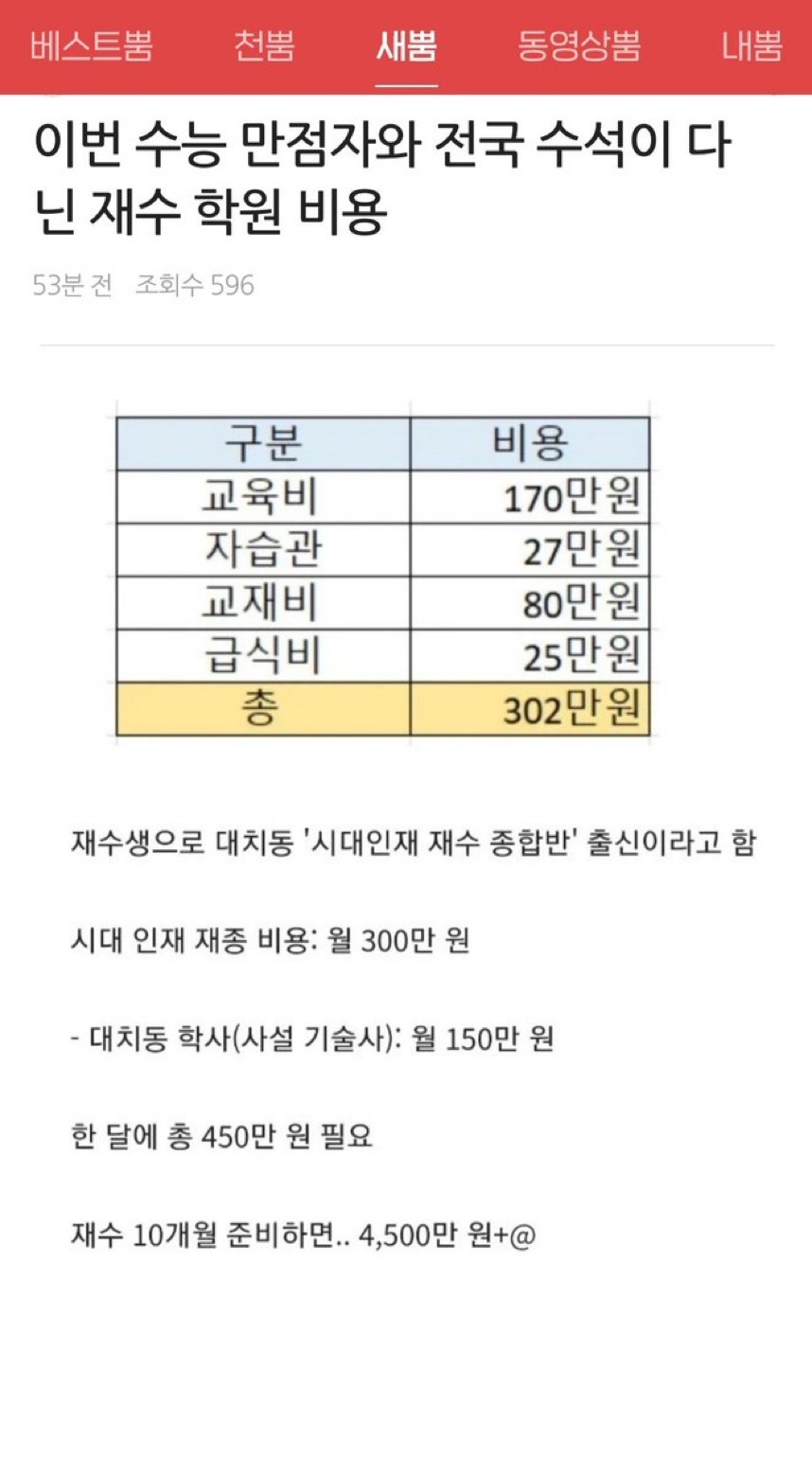 사교육비의 부담과 개천용이 더 힘들어진 시대를 비판하는 글 ✔️