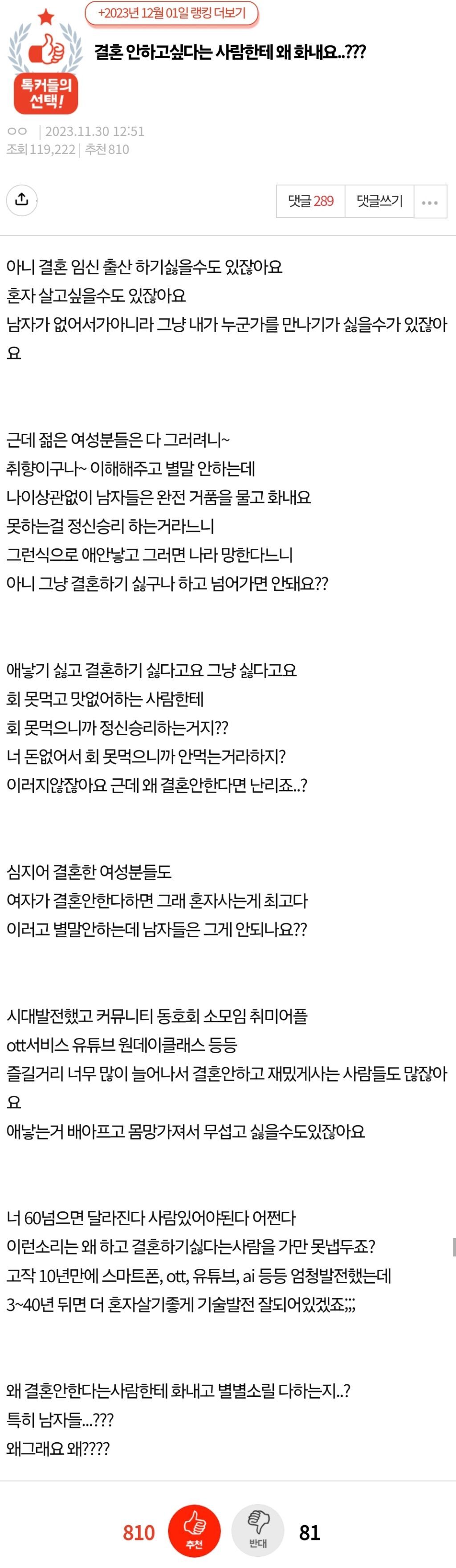 작성자아뽀키 작성시간 23.12.10 이래놓고 남자 기혼자 얘기 올라오면 하지마? ㅇㅈㄹ ㅋㅋㅋㅋ