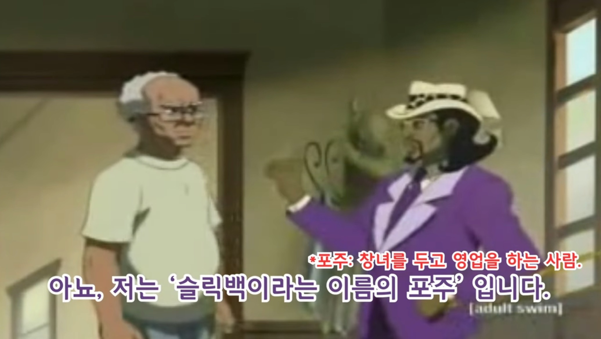 “아니(흑인 비하언어), 나는 슬릭백 이름을 가진 포주야”