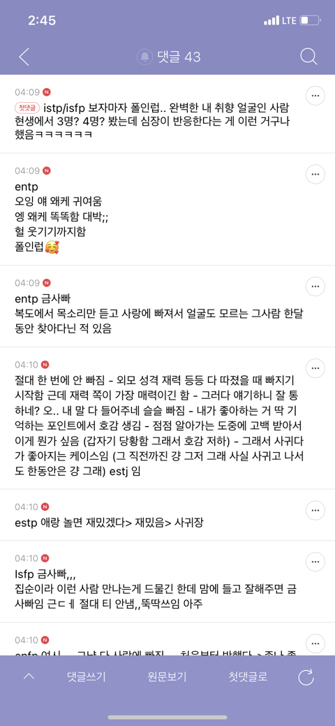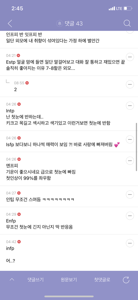 작성자할닉넴없 작성시간 23.12.13 estj 첫눈에 반하고 꽂히는거 X