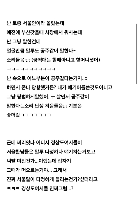 근데 나도 진짜 경상도 사람들끼리