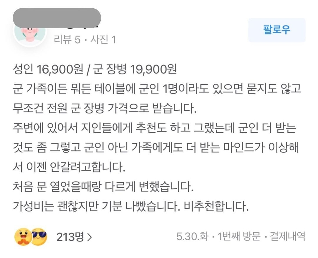 [흥미돋]국군 장병 가격이 다른 한 무한리필 가게 작성자나승현|작성시간23.12.13|조회수7,398 목록 댓글 29 글자크기 작게가 글자크기 크게가 출처 : https://www.instagram.com/p/C0yE3IbvdBJ/?igshid=MzY1NDJmNzMyNQ==어디야 먹으러 가게 다음검색 현재 게시글 추가 기능 열기 북마크 공유하기 신고 센터로 신고 댓글 댓글 29 댓글쓰기 답글쓰기 댓글 리스트 작성자봄햇쌀 | 작성시간 23.12.13 여기 경기 여주래. 작성자징-글벨 | 작성시간 23.12.13 왜겠냐 작성자유리멘탈흑흑 | 작성시간 23.12.13 개웃겨ㅋㄱㅋㄱ 작성자내꿈이룬다 | 작성시간 23.12.13 얼마나 쳐먹으면돼지새끼들 ㅉㅉ 작성자Nulife | 작성시간 23.12.14 ㅈㄴ웃김 댓글 전체보기