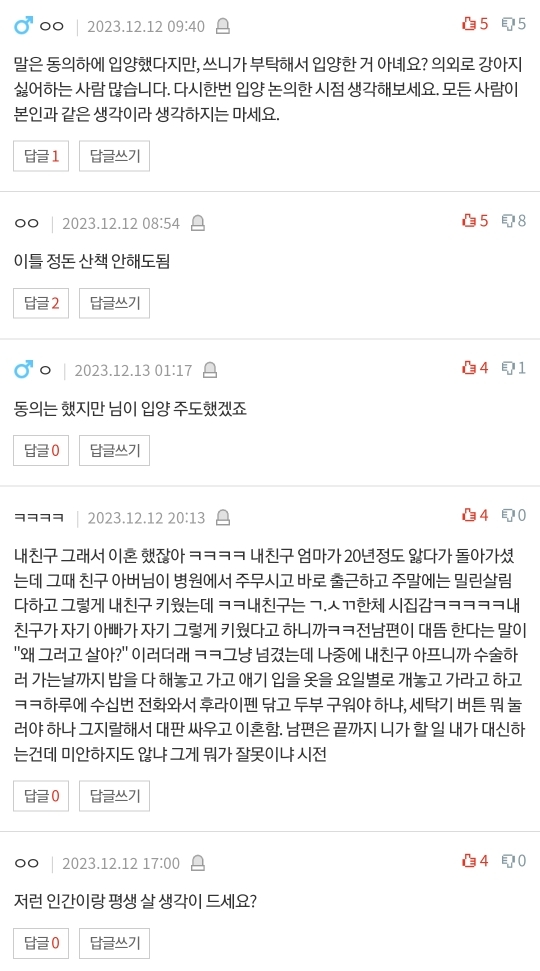 작성자내가알아서할게요 작성시간 23.12.13 입양 주도햇으면 저래도된다? 그럼 애낳자고 한 놈이 애 다 키워라