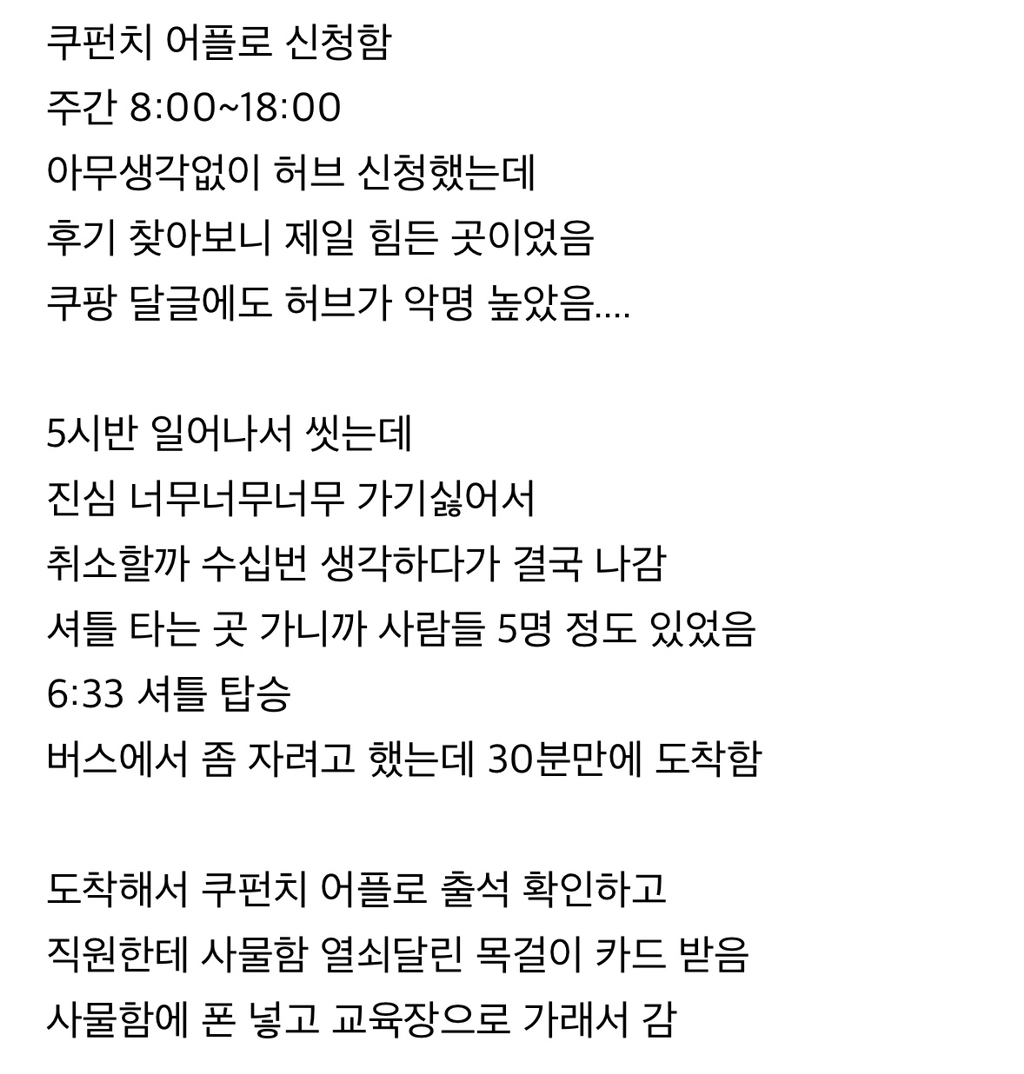 근무 확정되고 다음날 근무하러 갔는데