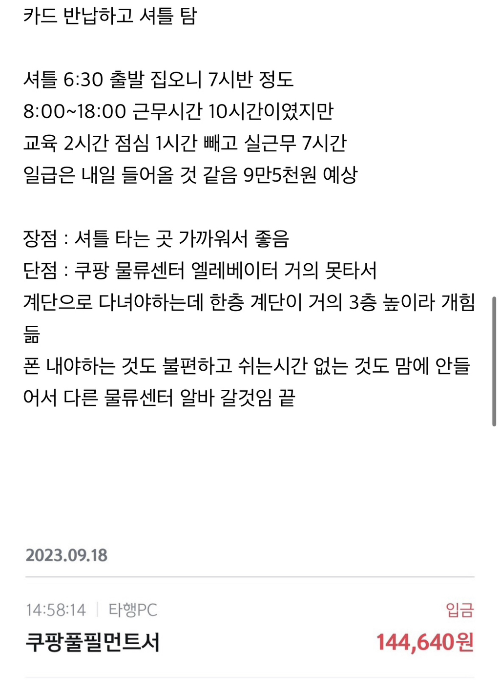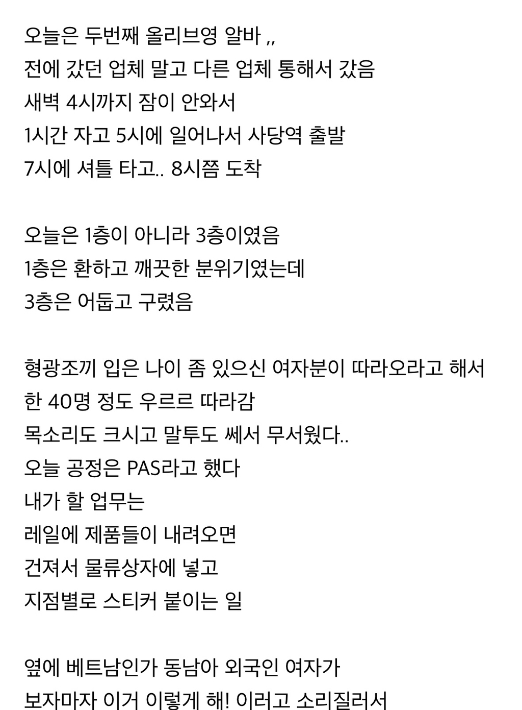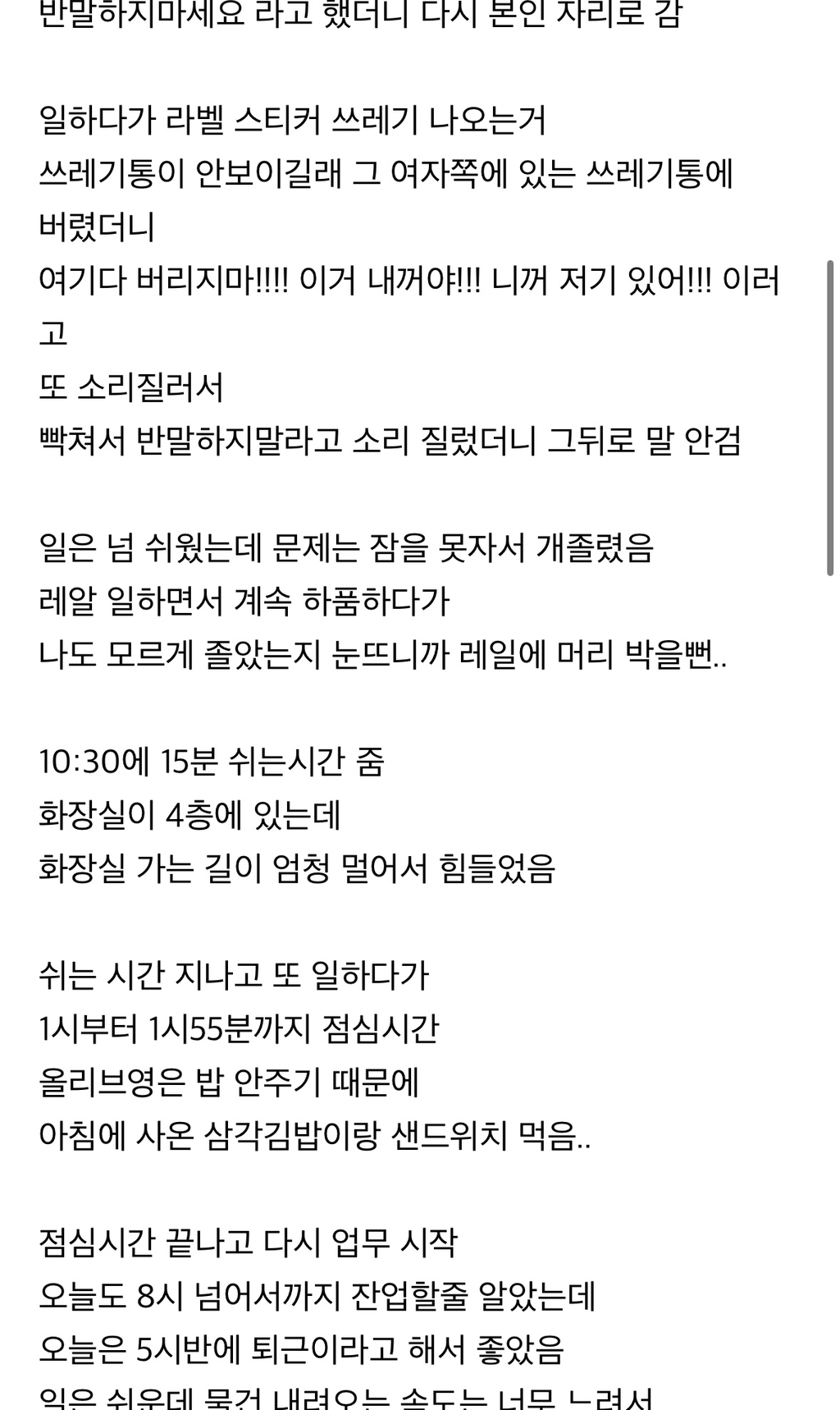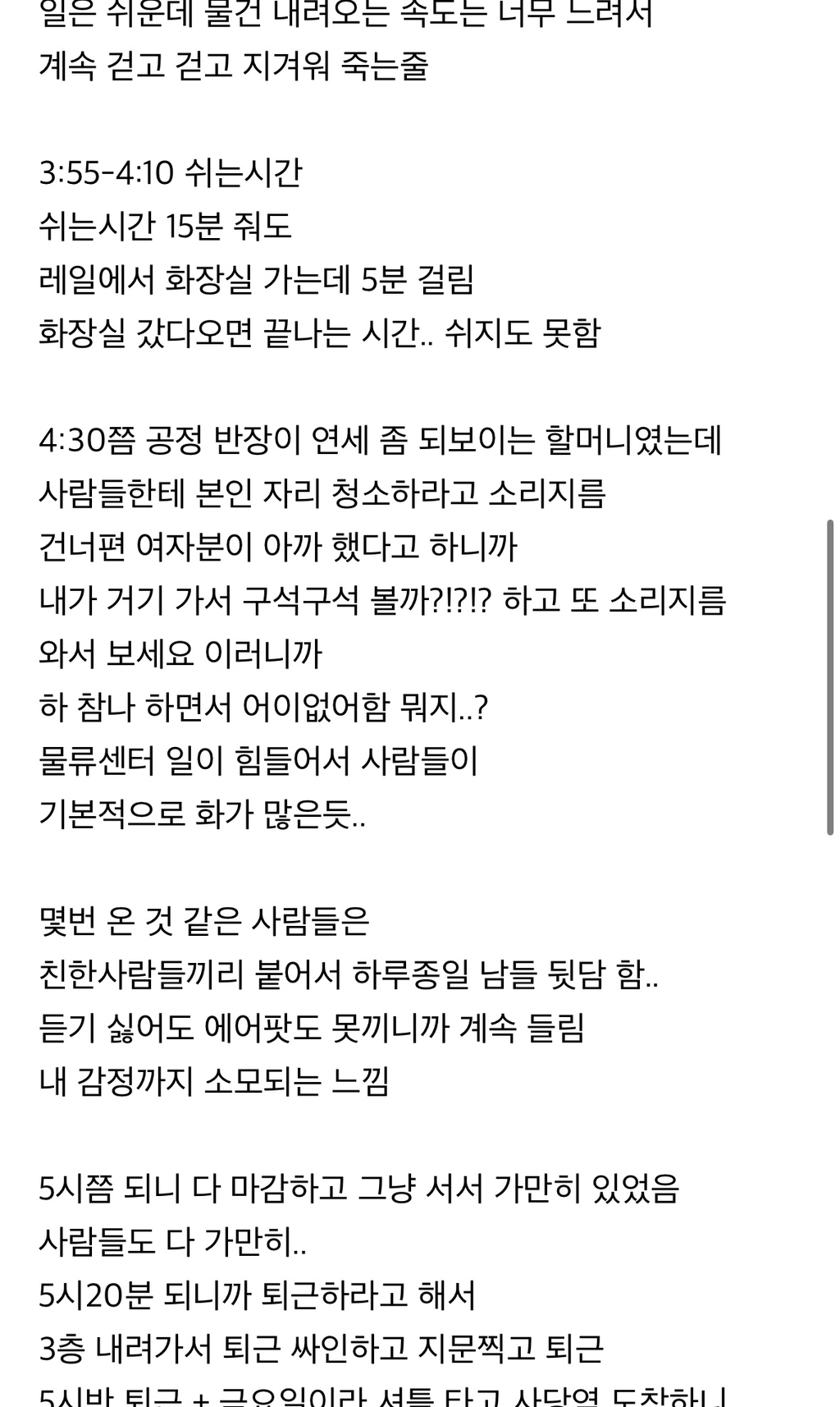 이날도 택배 포장하고 4시간 일하고 1시간 쉬고 와서