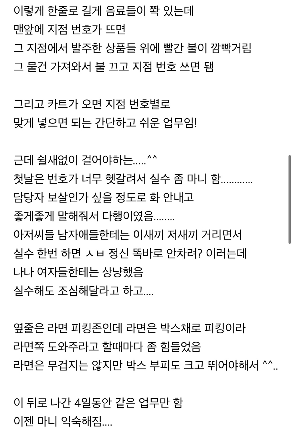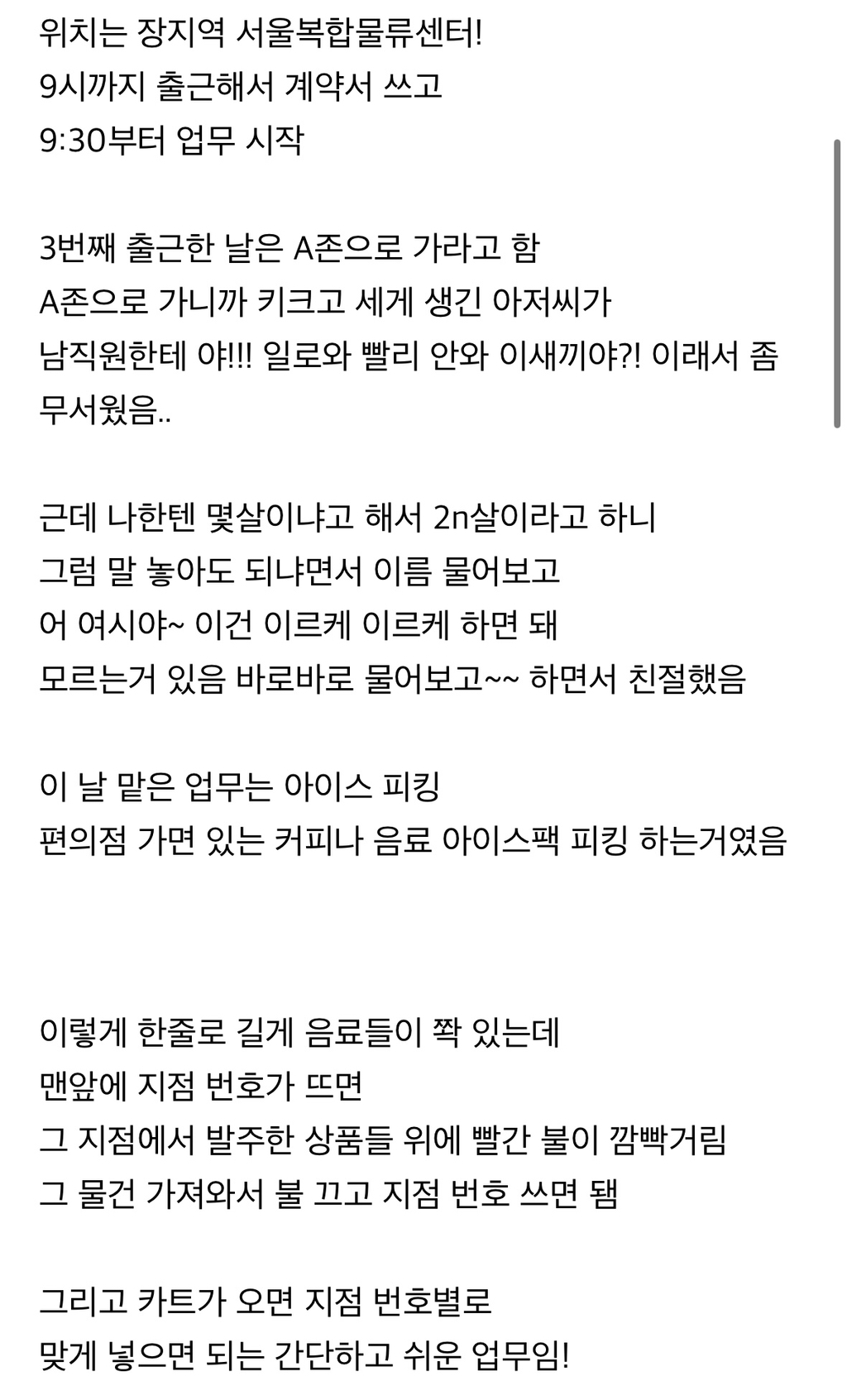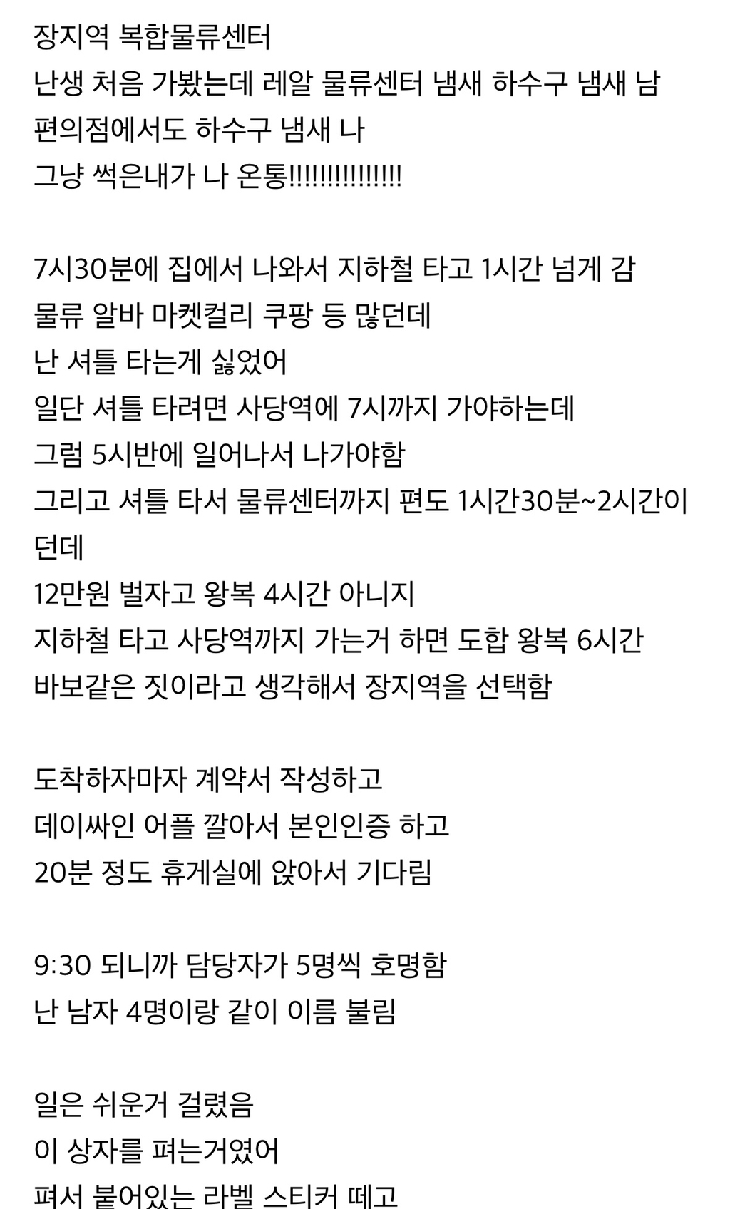 백수가 된 나는 한번도 해본적 없던 물류알바에
