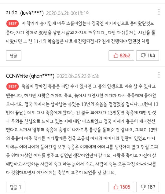 웹툰 결말은 마지막화 베댓보면 예상가능