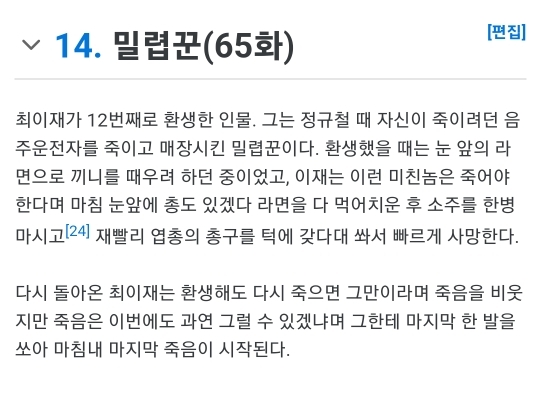 웹툰에선 연쇄살인마설정이였는데
