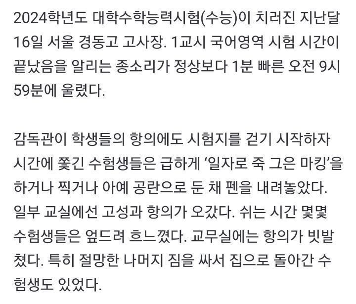 작성자꼰대부장 작성시간 23.12.19 이해못하겠다는 댓글이 제일 이해 안간다ㅋㅋㅋ 윗댓 말마따나 비행 시간까지 조정하는 이 나라에서 수능인데 ㅋㅋㅋㅋㅋㅋㅋ