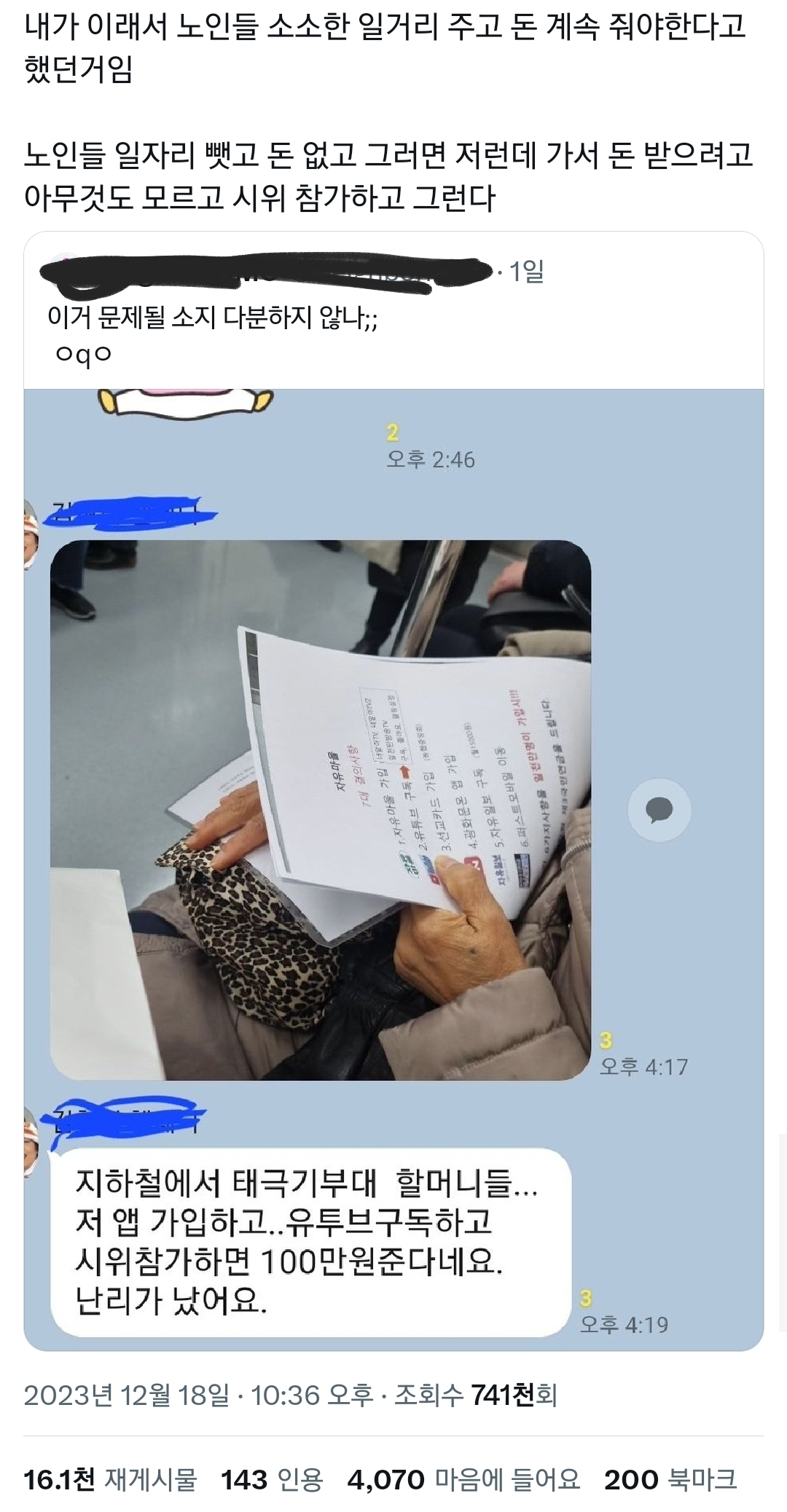작성자뽕긋 작성시간 23.12.20 맞아 나 광화문에서 일했는데 시위하는 날 할저씨들 통화하는거 우연히 들으면 친구들한테 전화해서 여기오면 돈도 주고 막걸리도 준다고 꼬시는 전화하는거 많이 들음